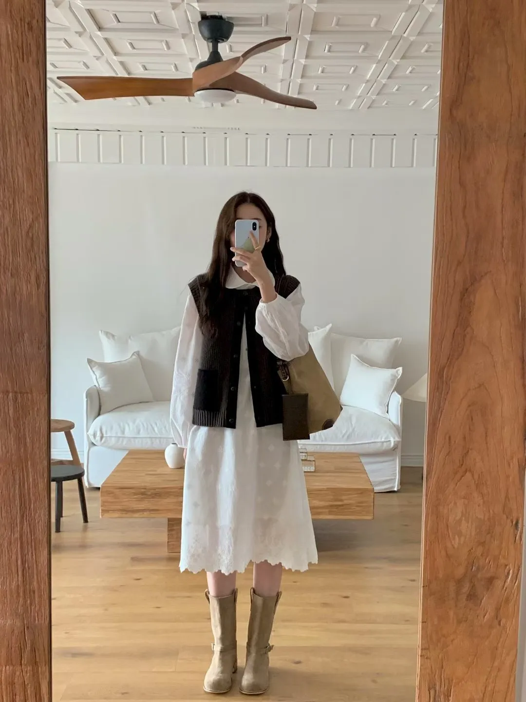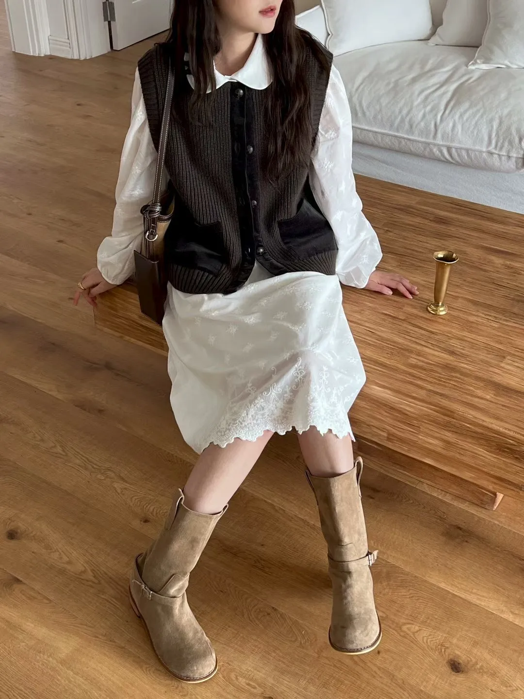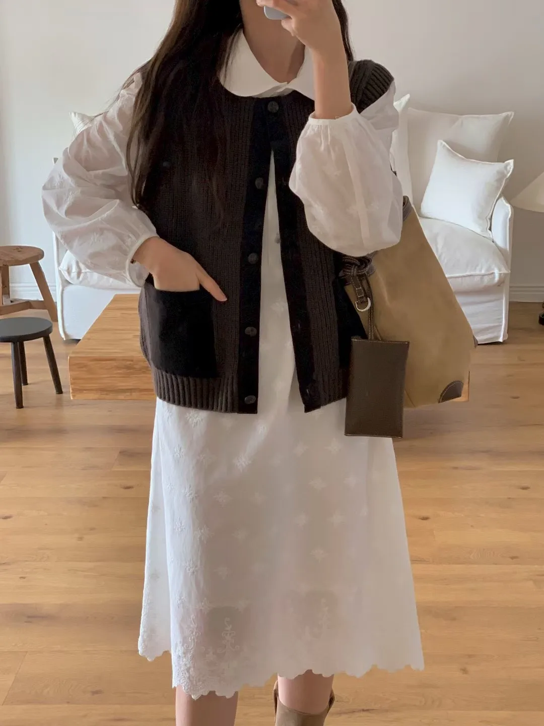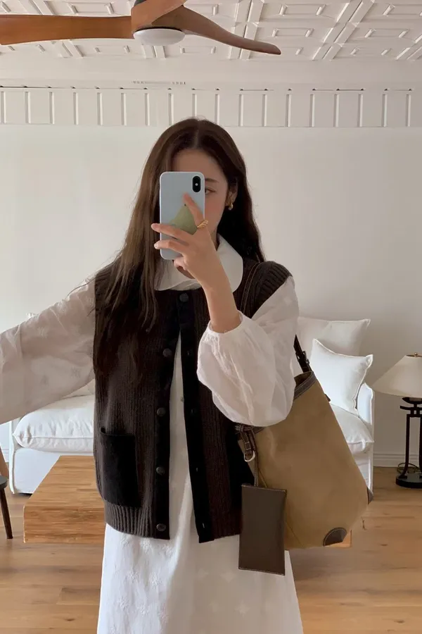 A41 1105超美質感家拼接燈芯絨口袋排釦圓領羊毛100%針織背心
