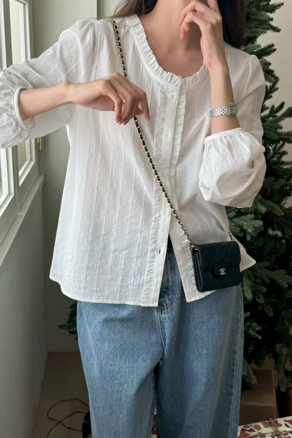 E218拱門家氣質花邊襯衫