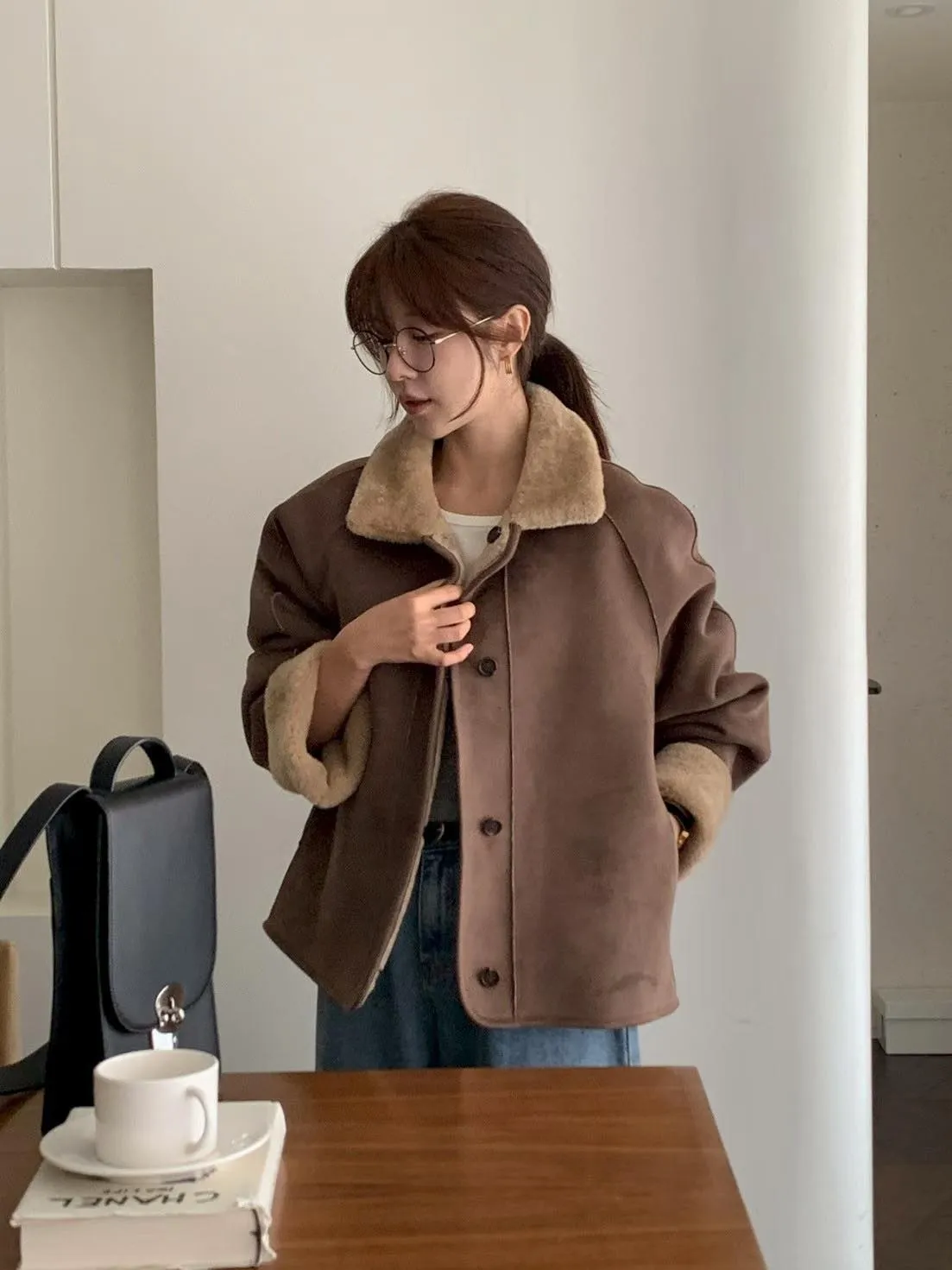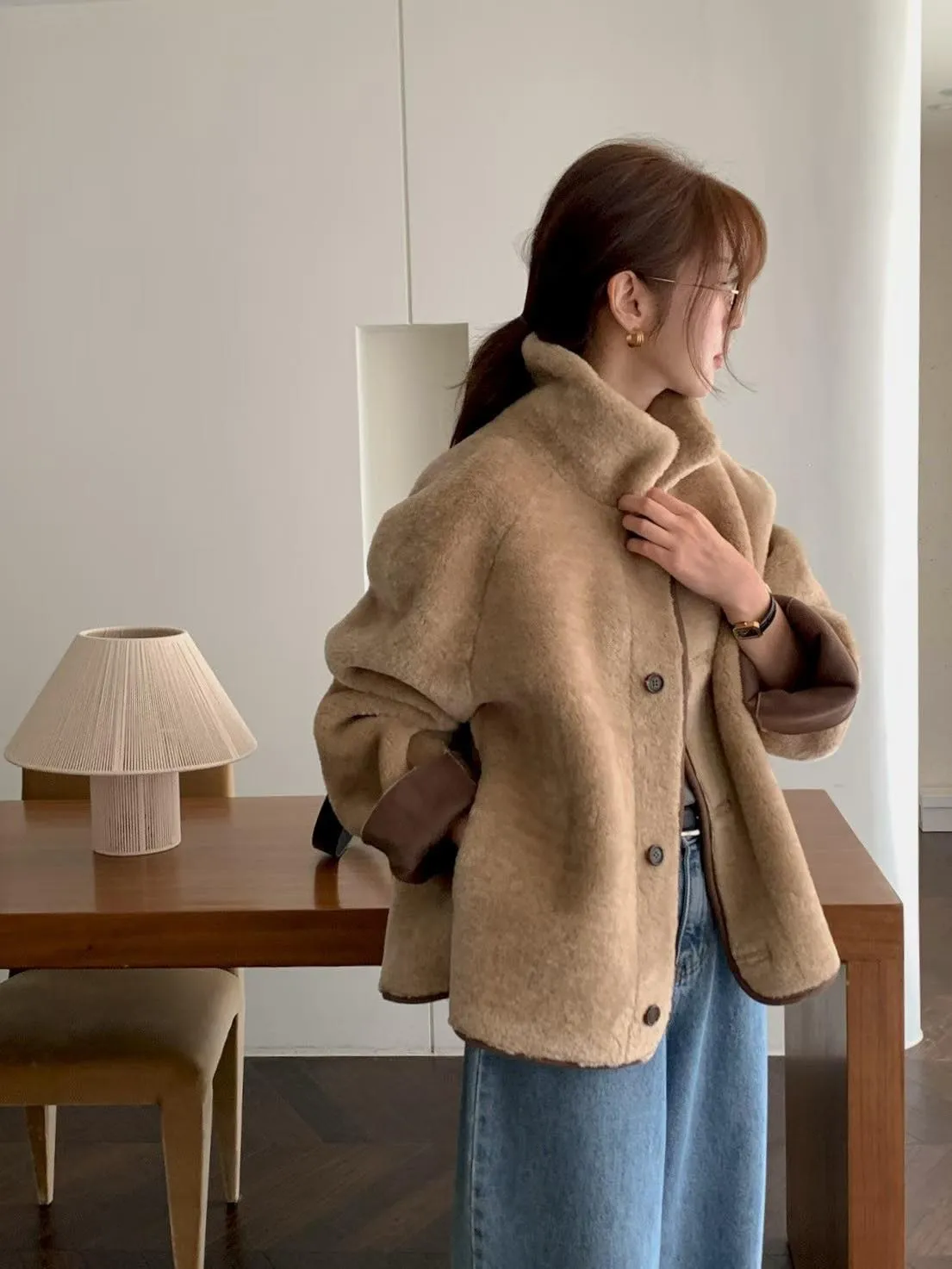 E215拱門家雙面穿羔毛麂皮外套