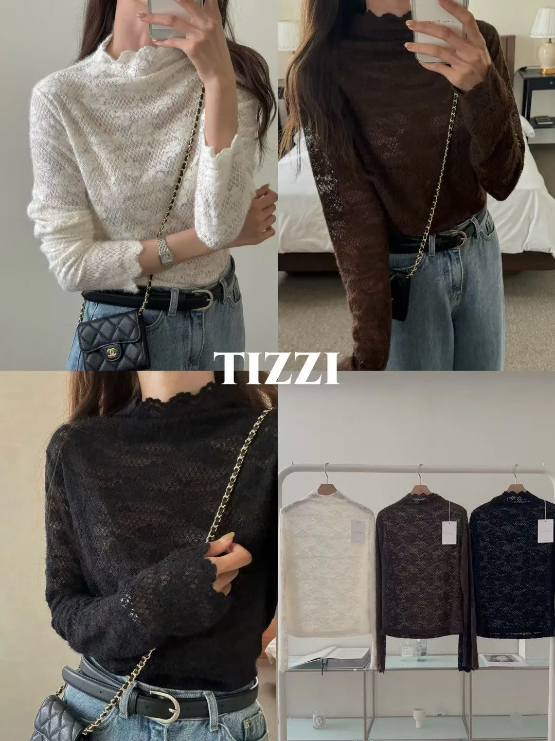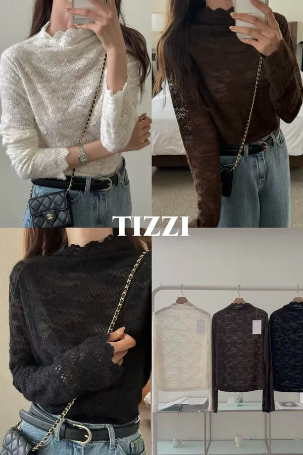 E211拱門家微絨蕾絲花立領上衣