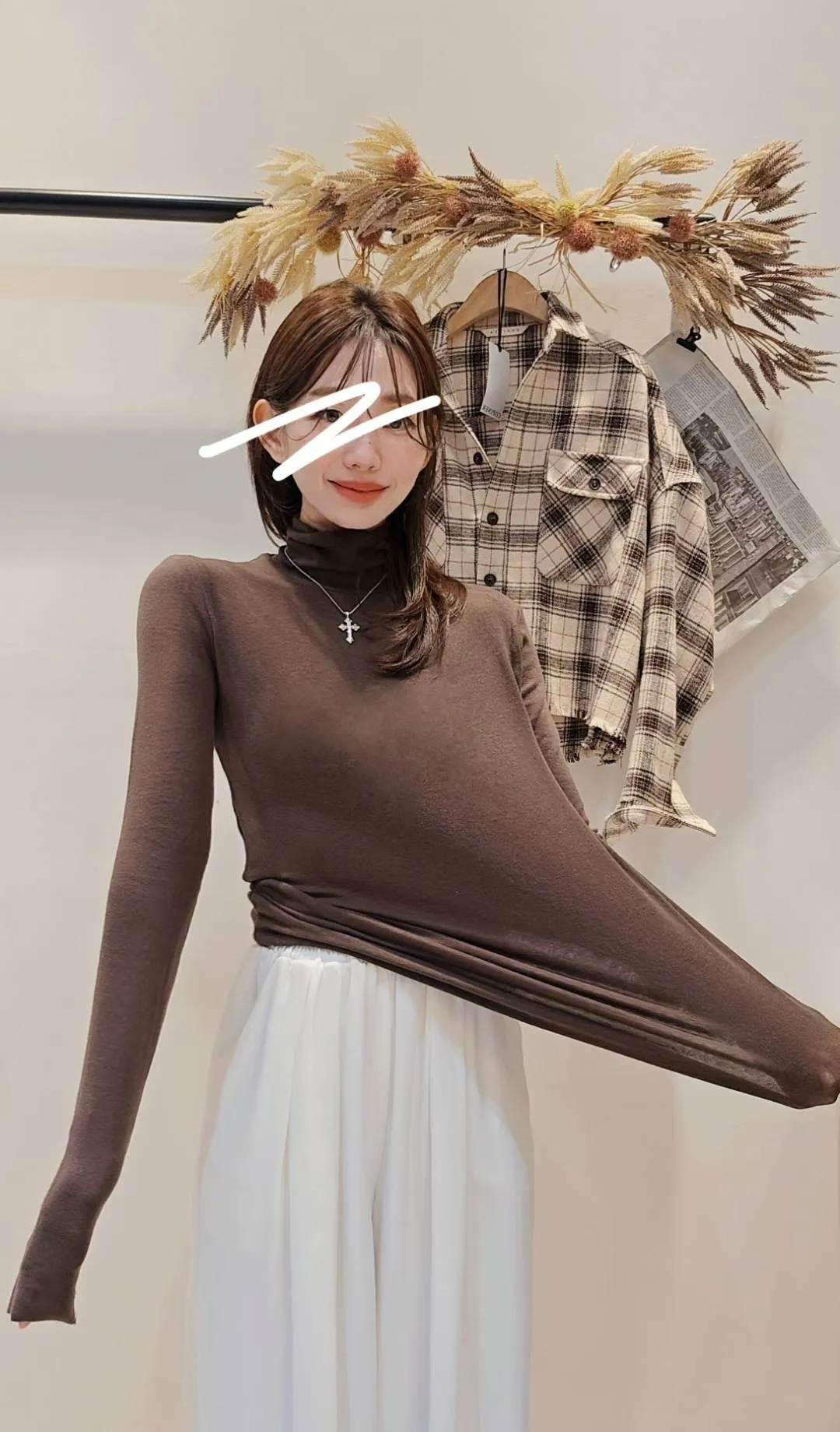 今年的天絲羊毛高領T是高級色調,新色橄欖咖和高級灰超顯白🍁🧸🍯🤎