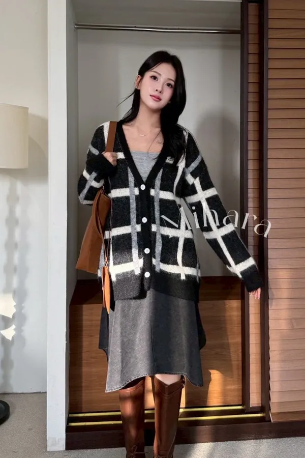 A25 1109V領開釦格紋外套2色