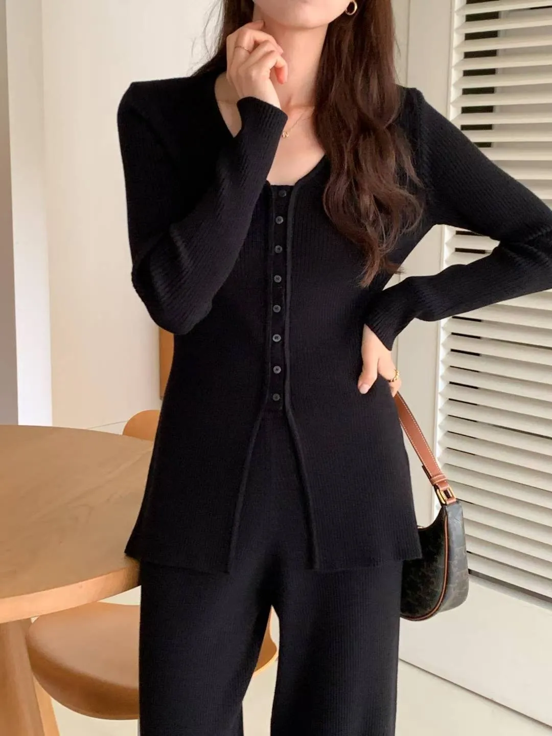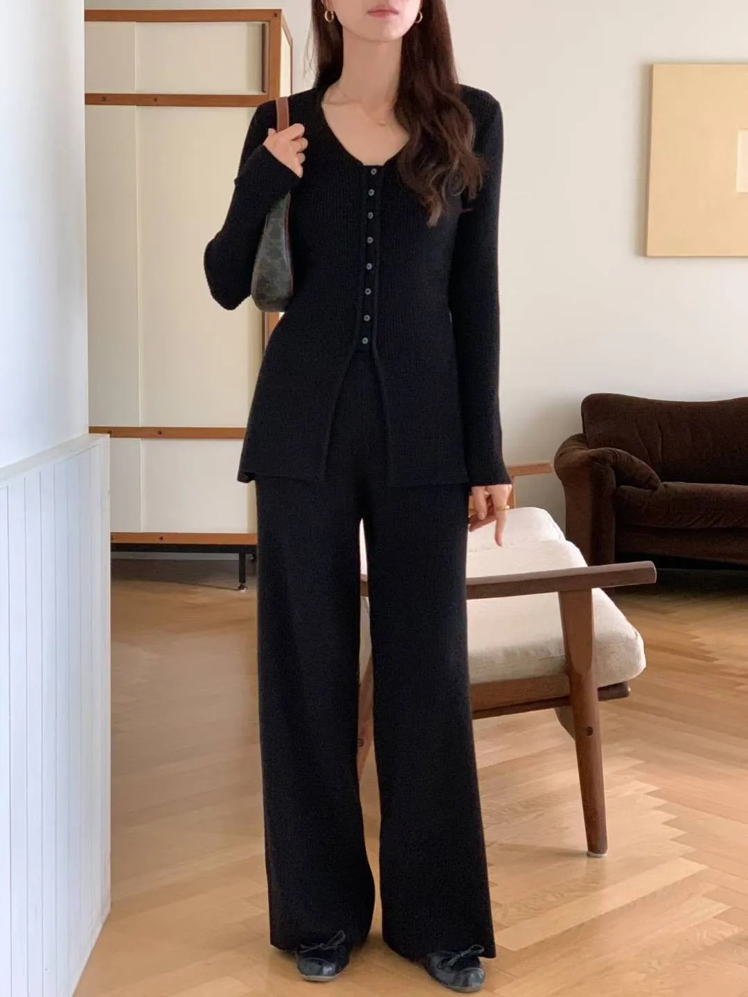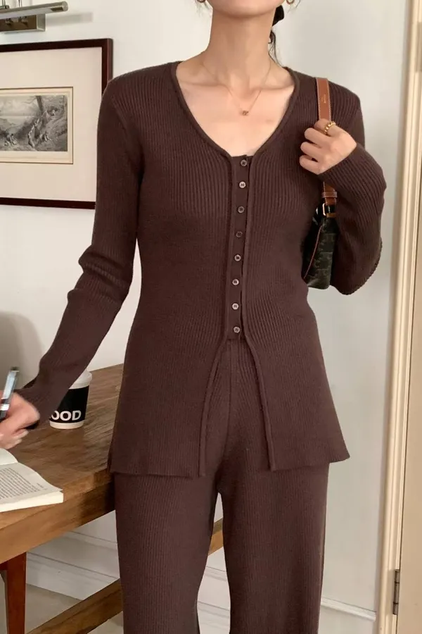 A18 1112質感設計家前開衩排釦V領坑條上衣