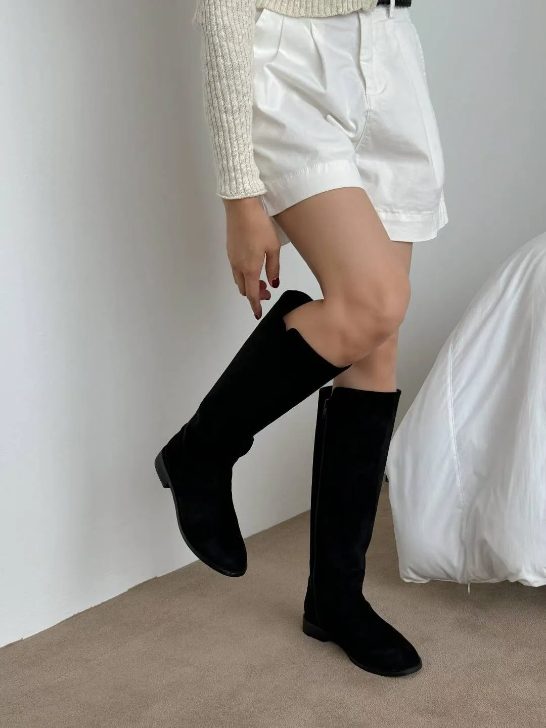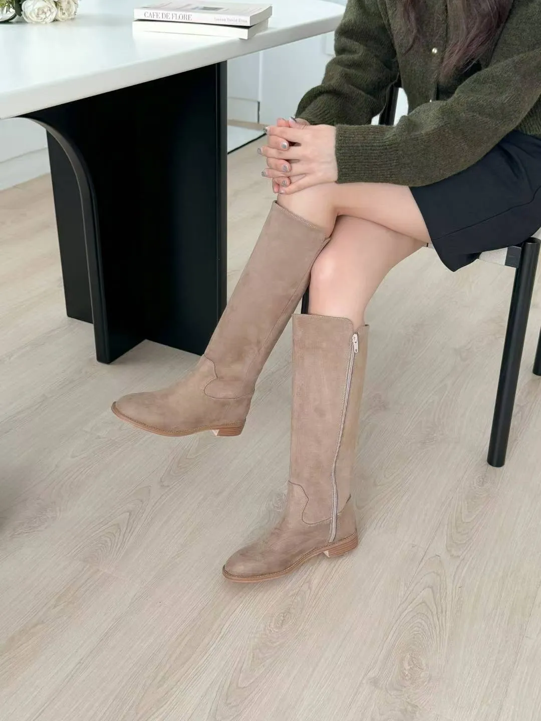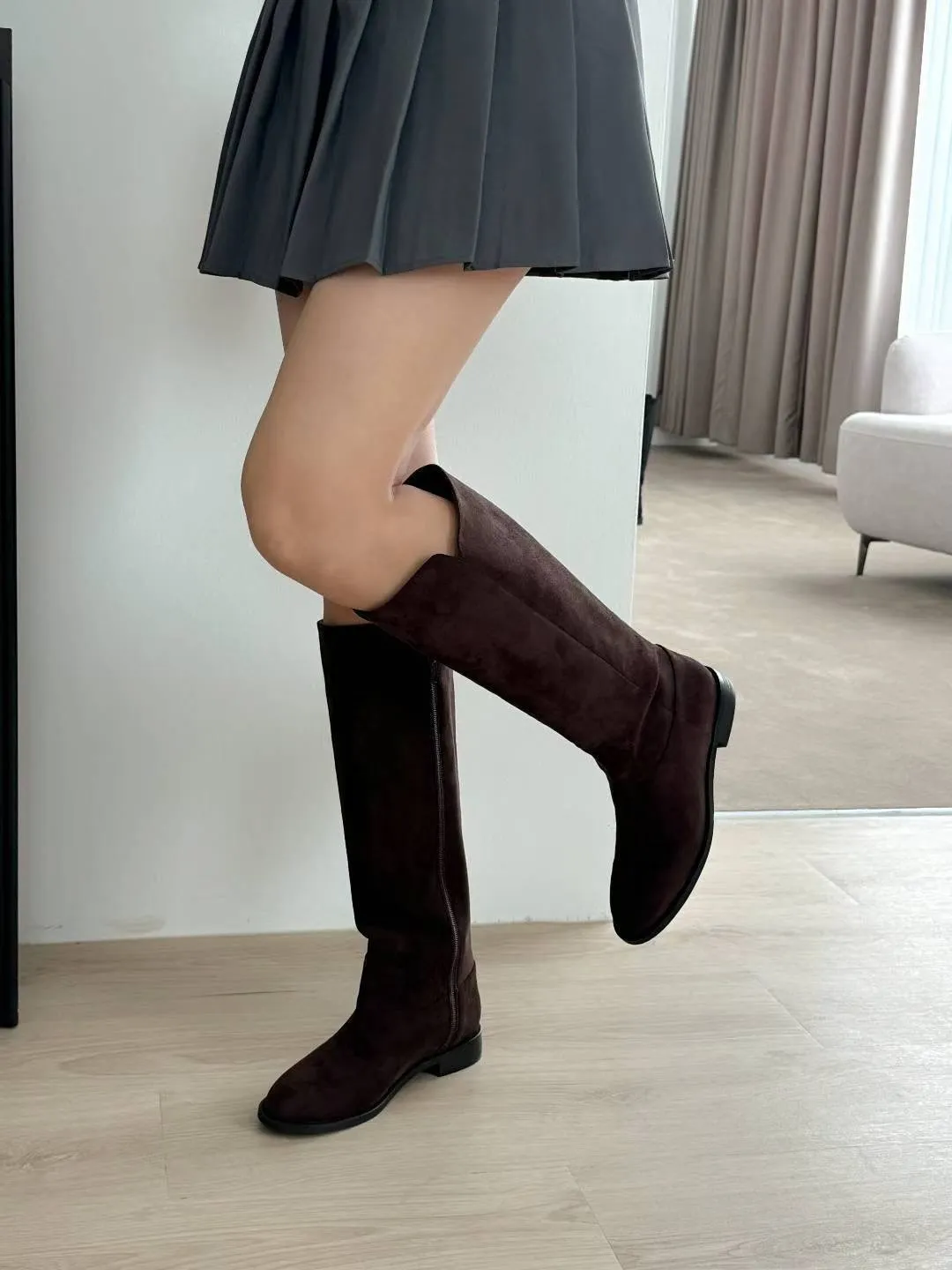 A12 1112(強推)麂皮圓頭高筒靴(230-250)3627