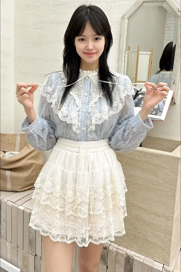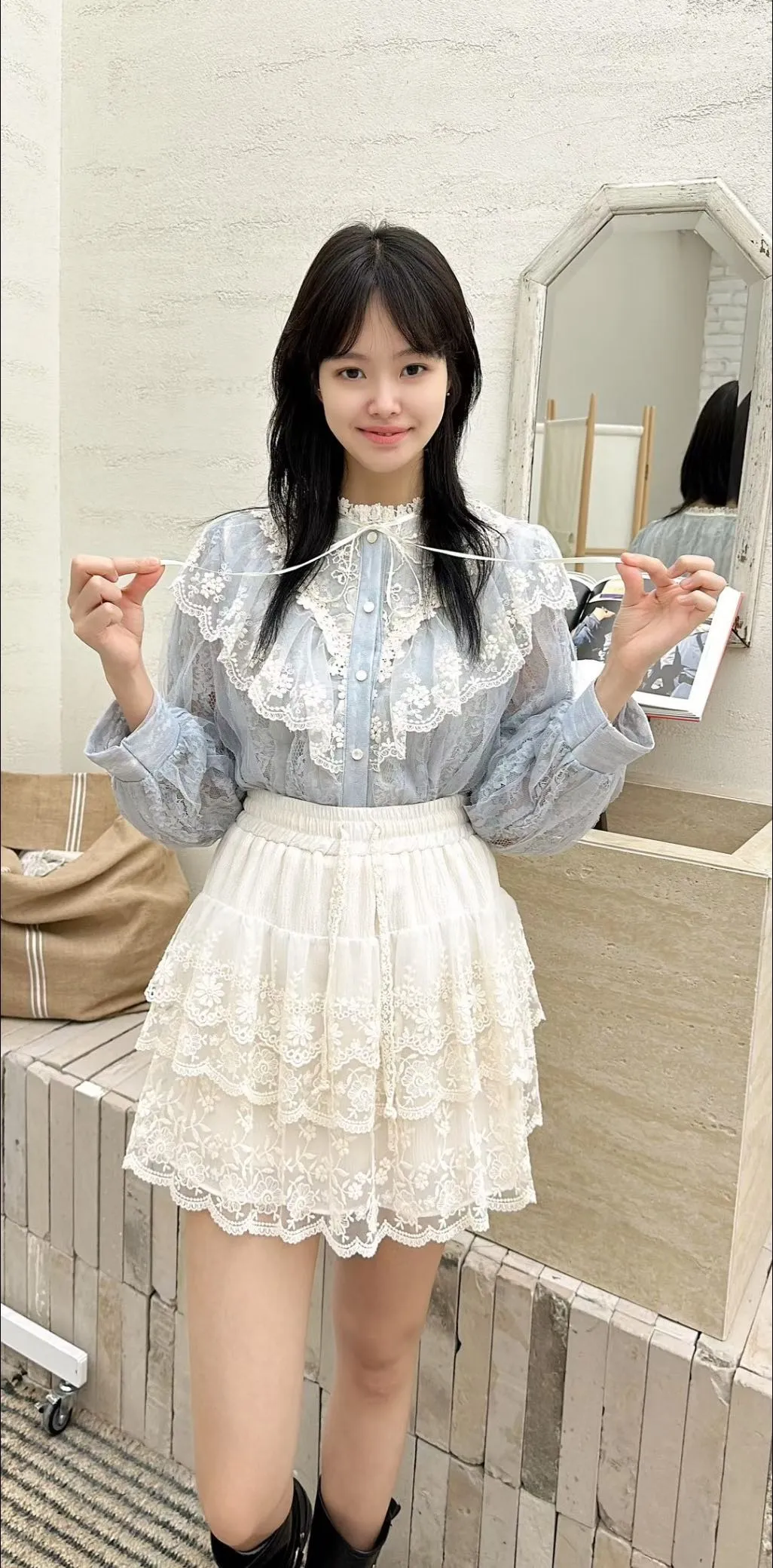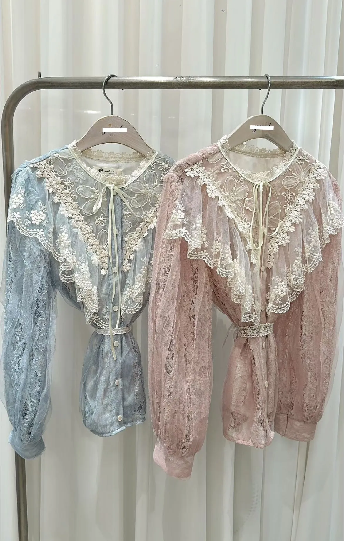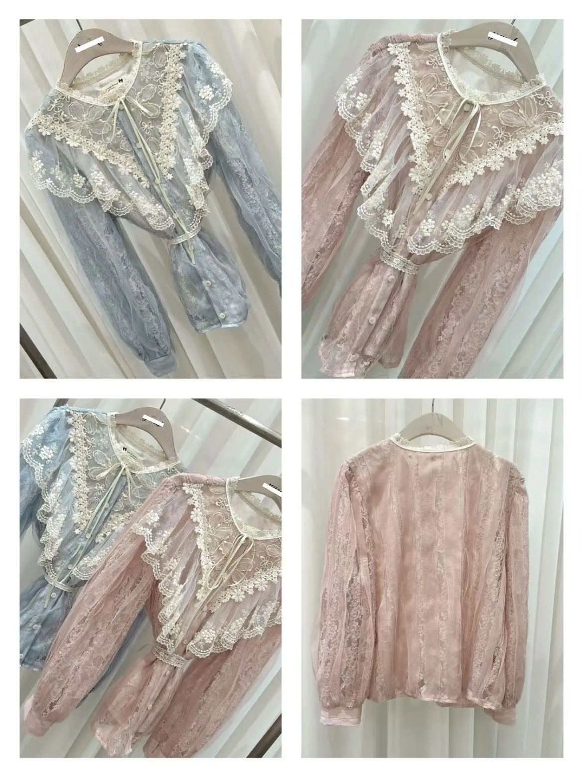 E28 高檔甜美蕾絲浪漫V型蕾絲上衣