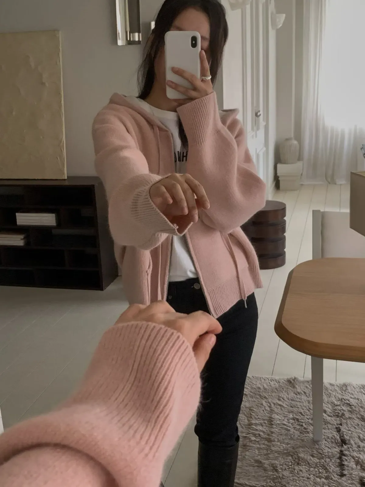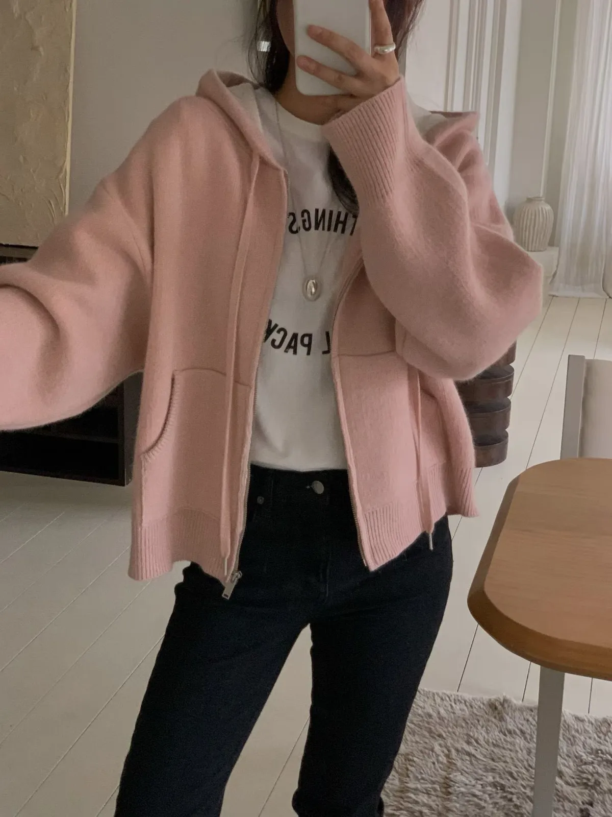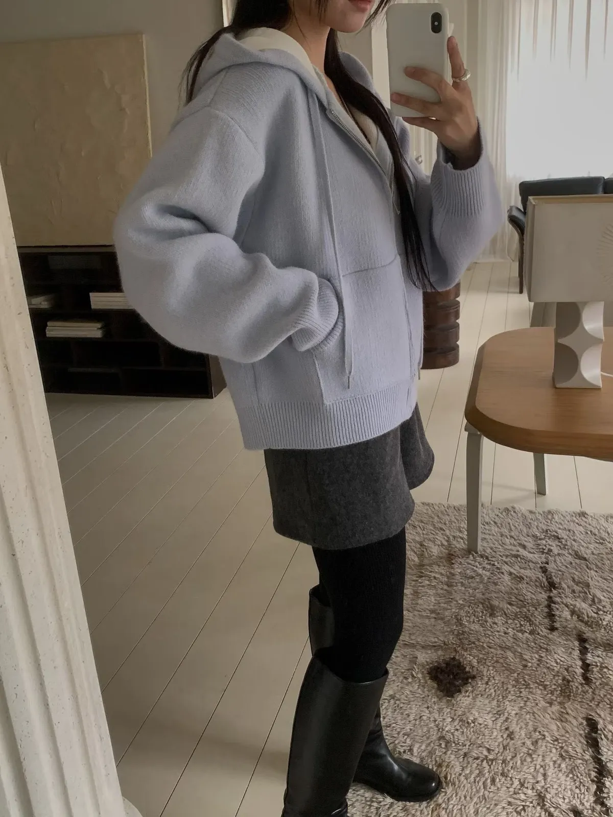 E151字母家寬鬆羊毛連帽拉鍊外套