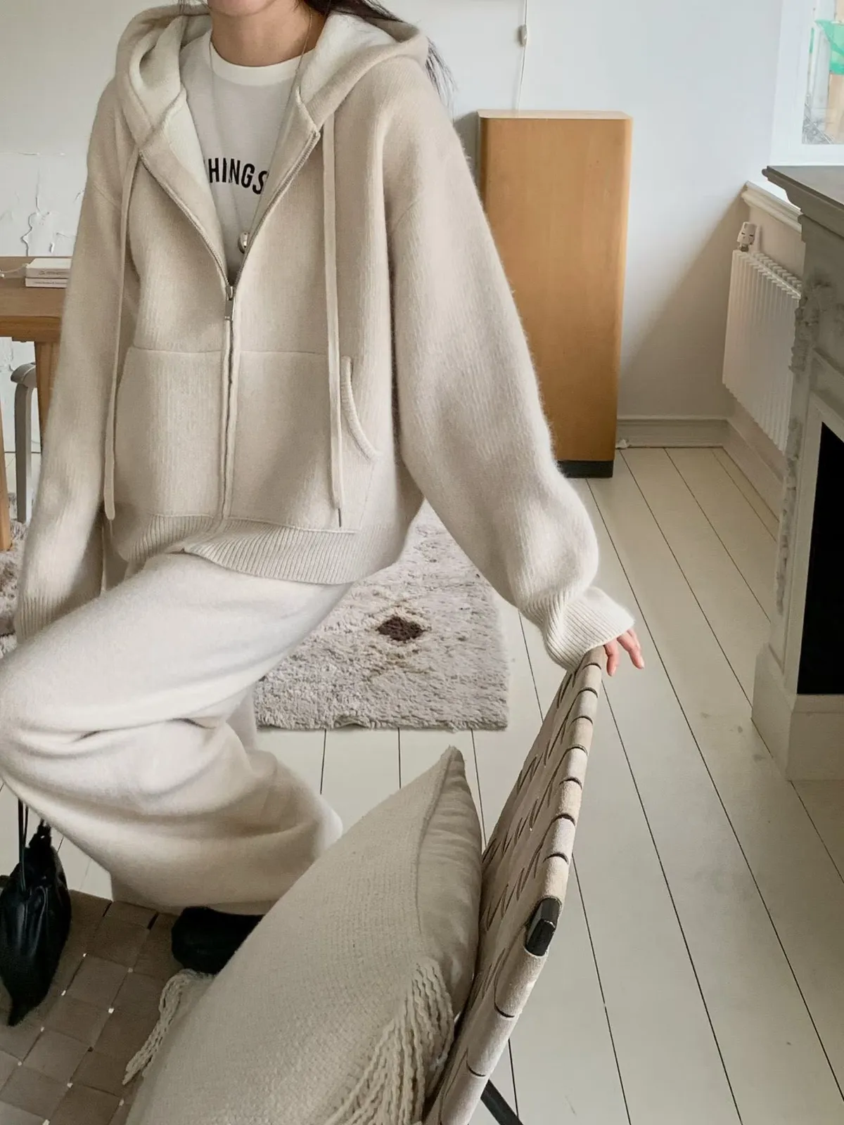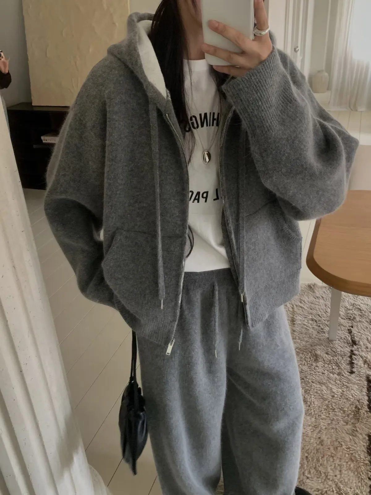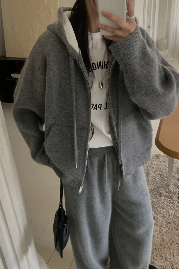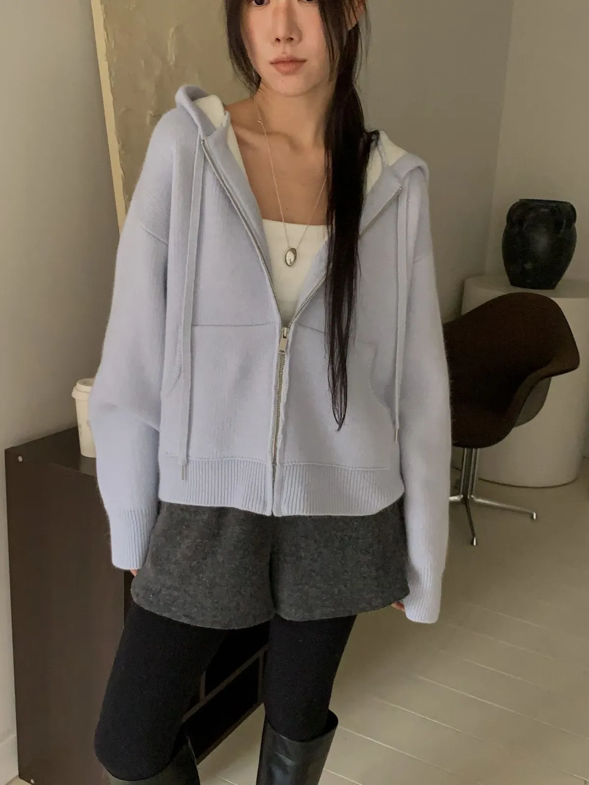 E151字母家寬鬆羊毛連帽拉鍊外套