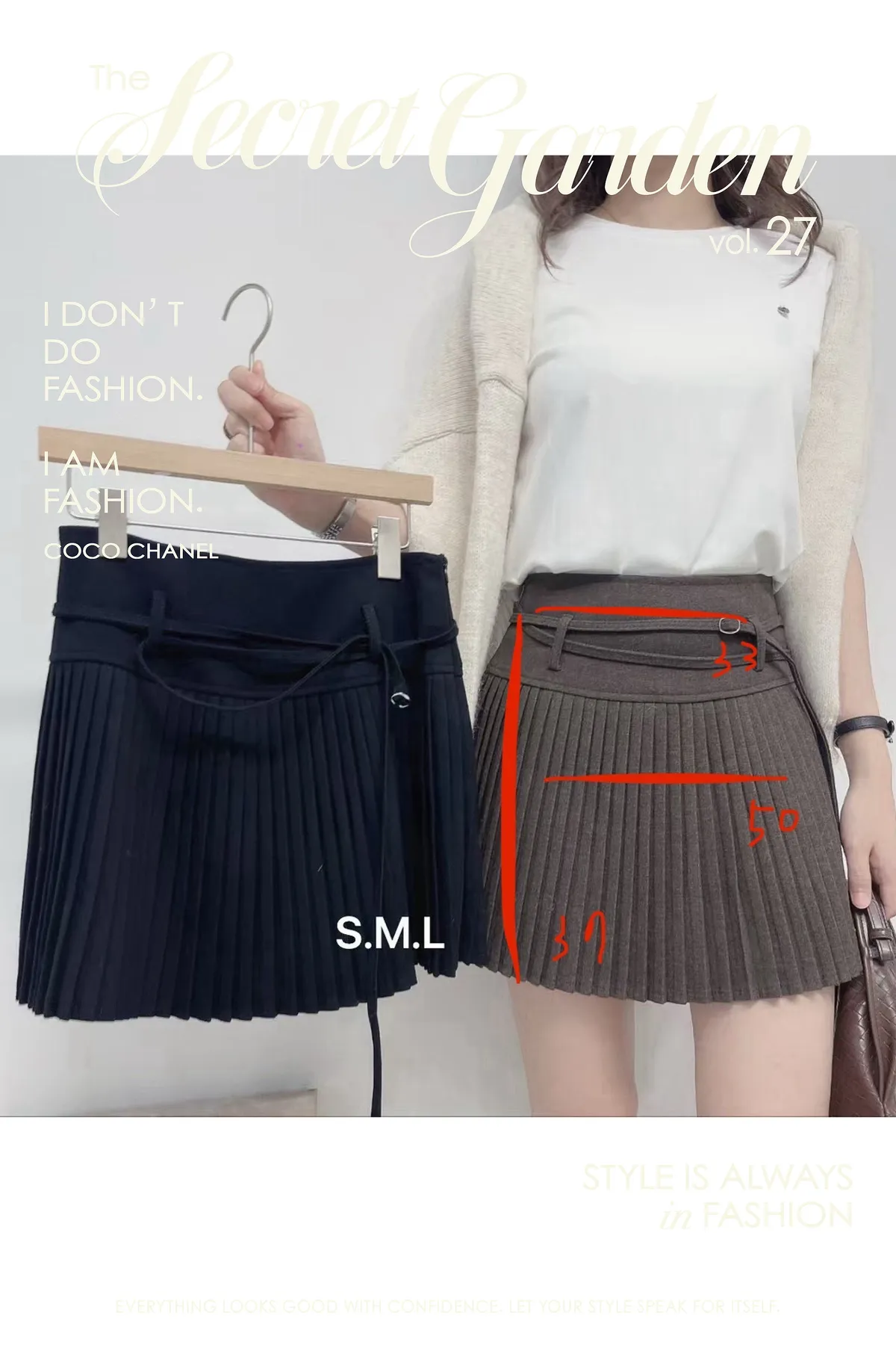 A38 1113甜甜設計家細百褶A字短褲裙附腰帶