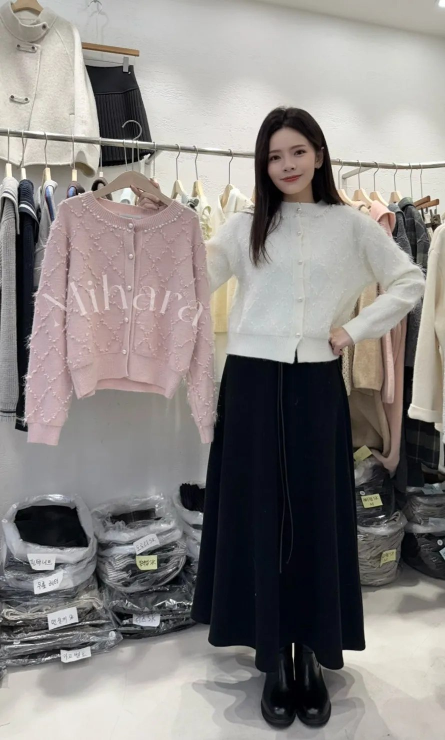 A42 1113甜甜設計家拼接珍珠菱格流蘇金蔥排釦圓領針織上衣