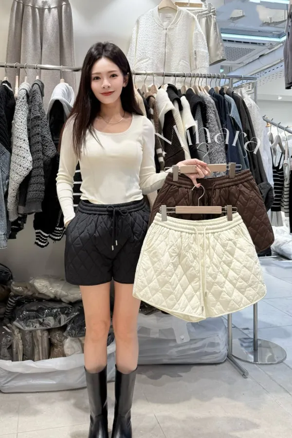 A58 1113CP外套家抽繩綁帶菱格棉短褲
