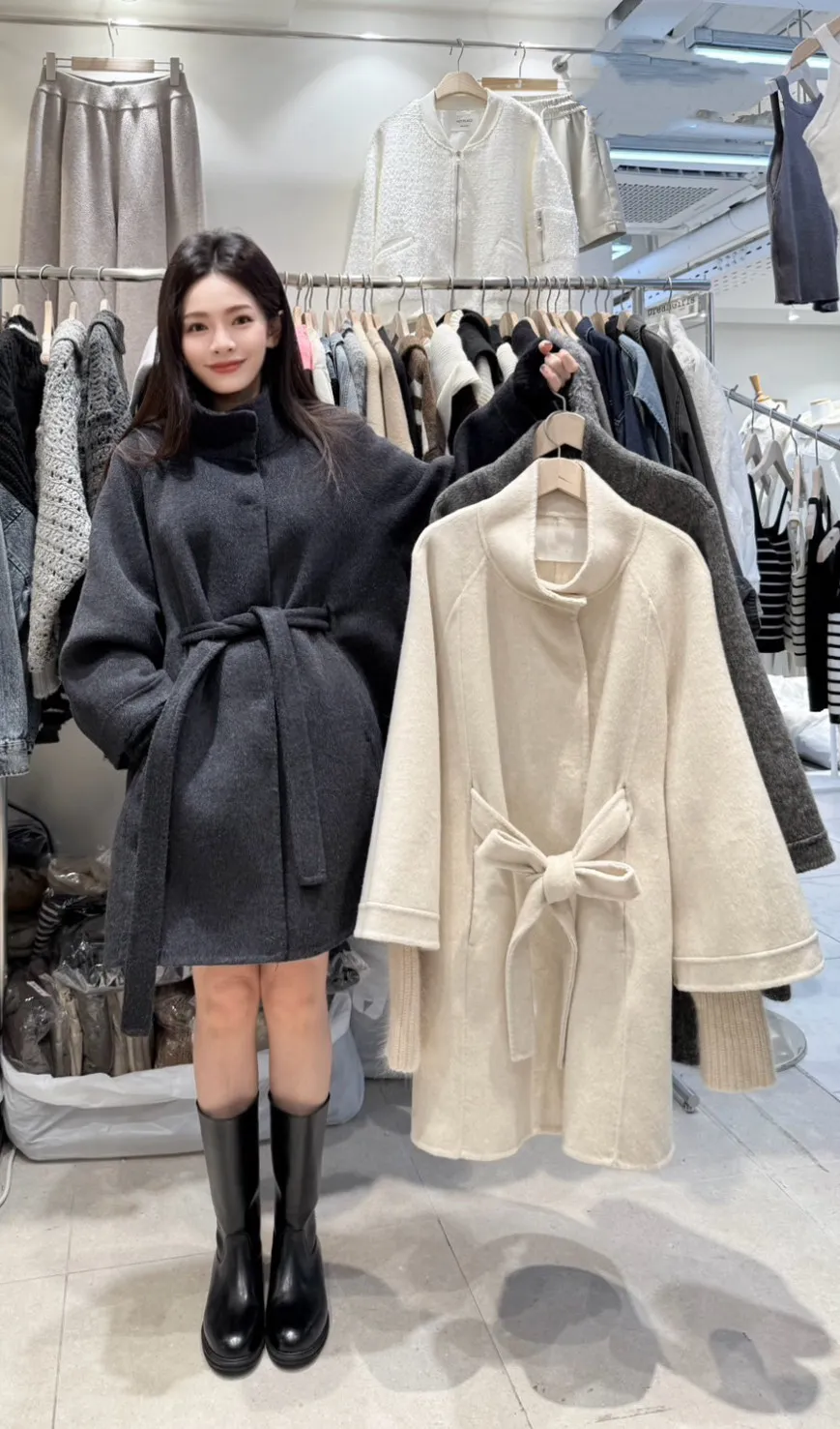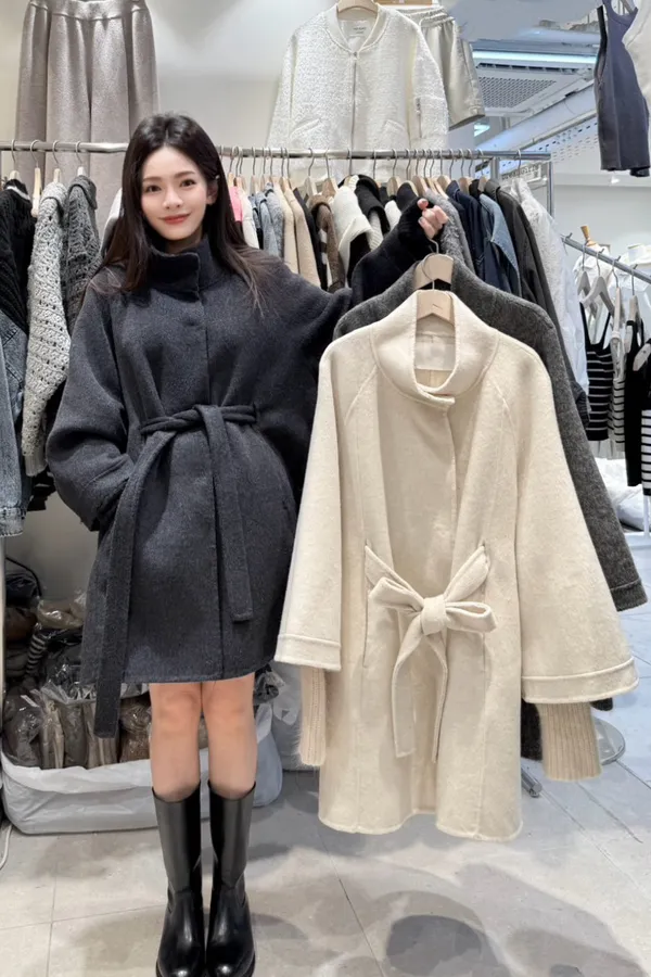 A62 1113CP外套家羊毛50%手工大衣外套附綁帶