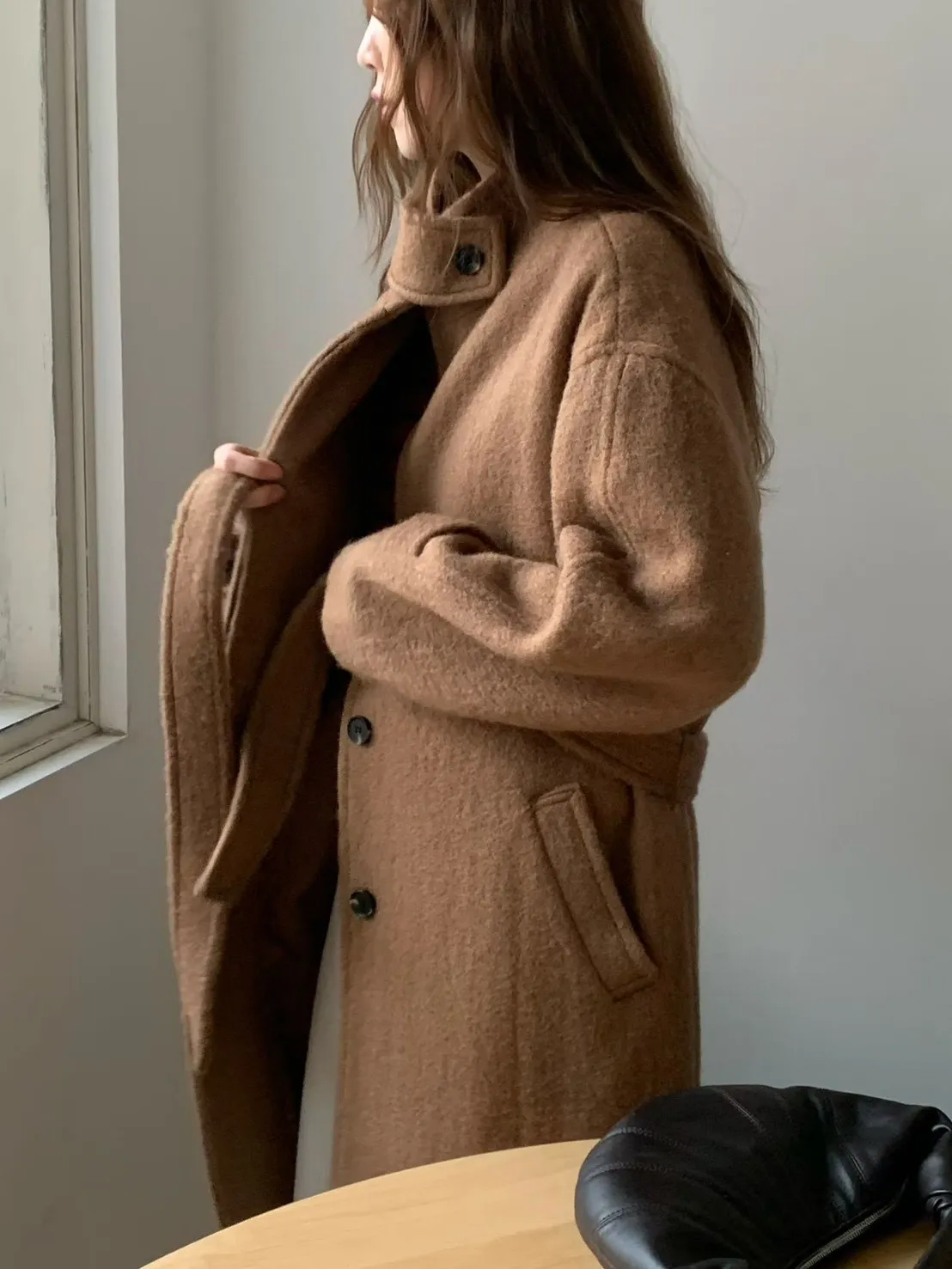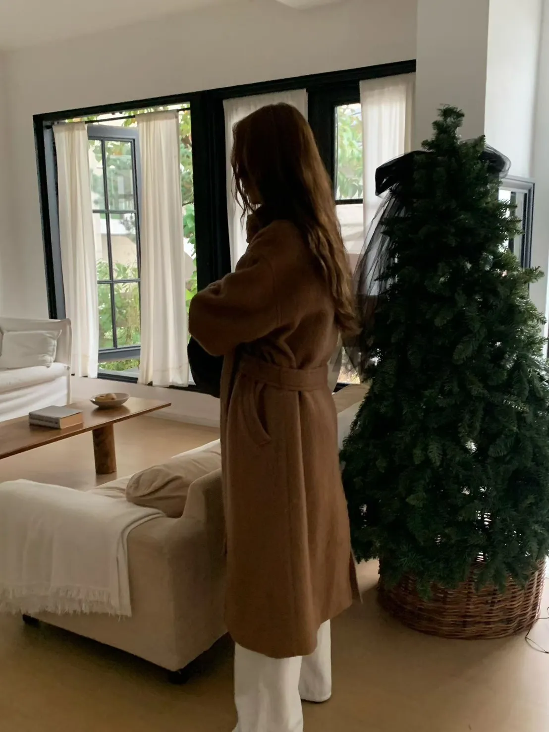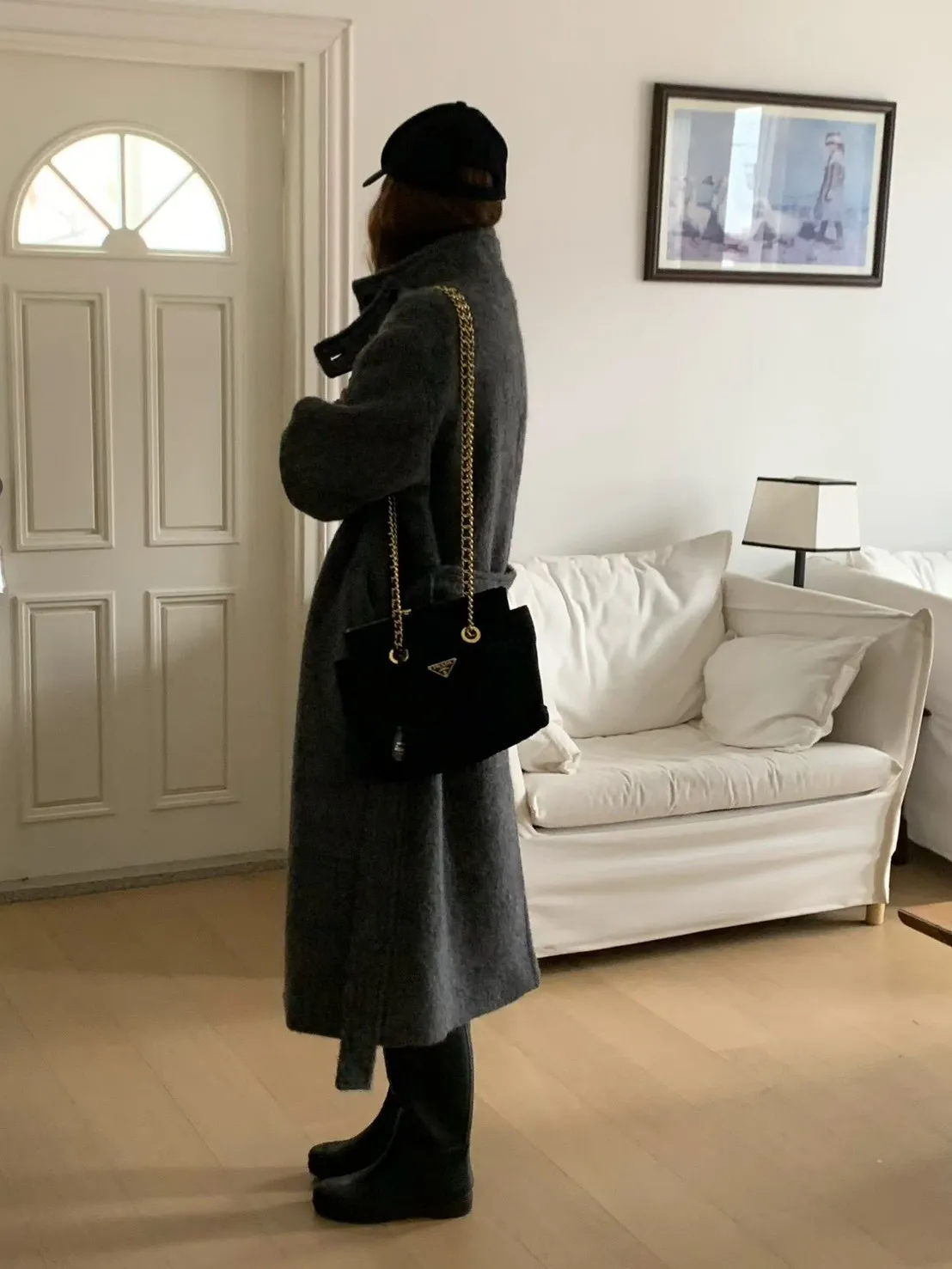 A7 1116高檔小香家立領翻領兩穿綁帶羊毛大衣