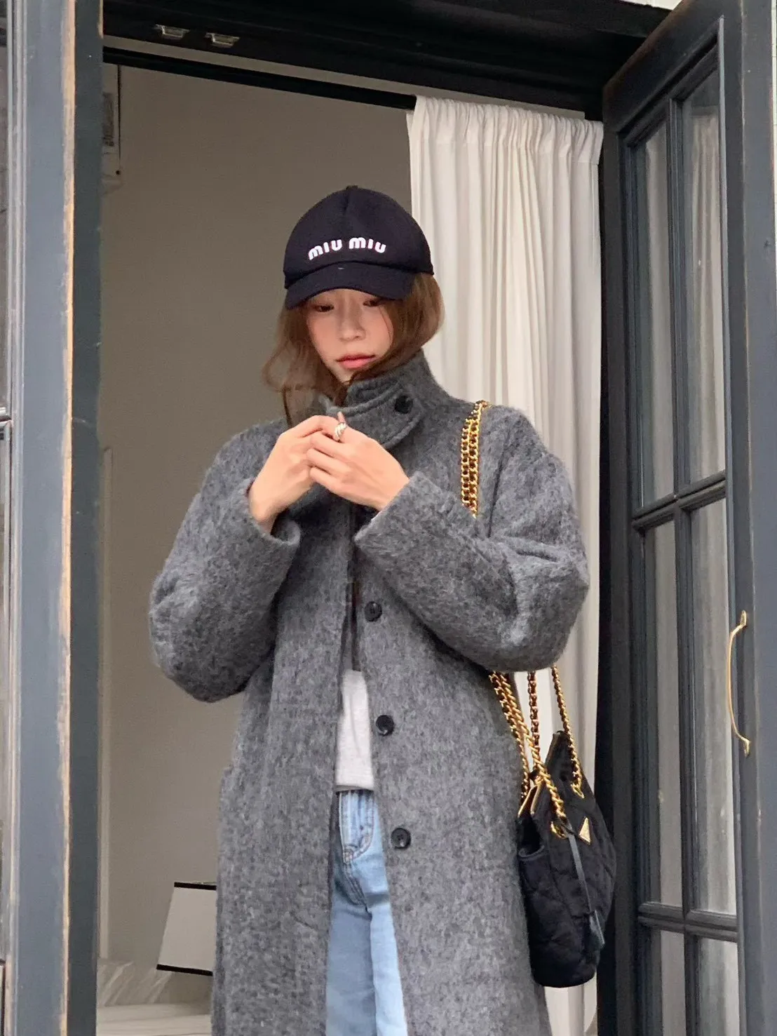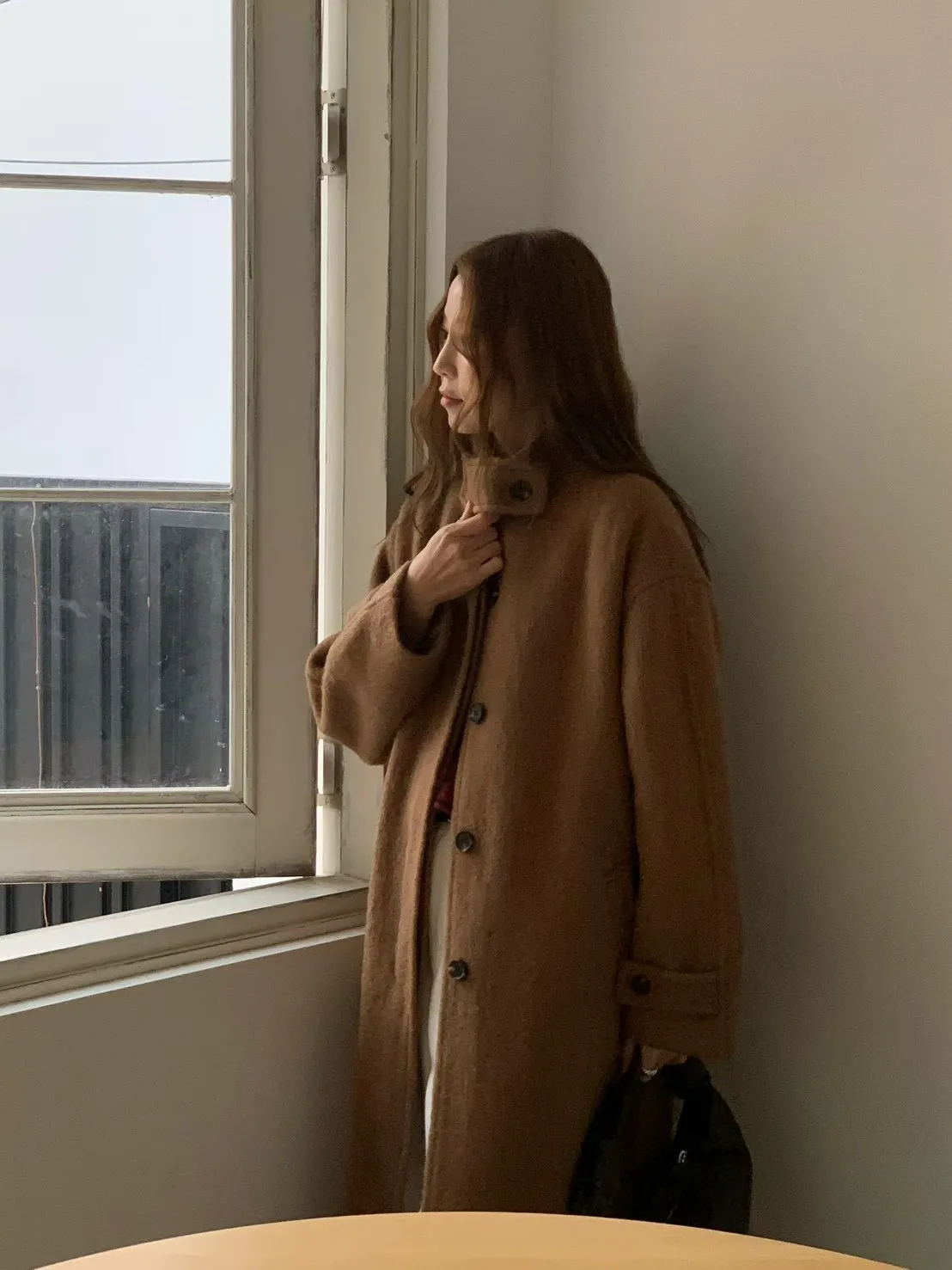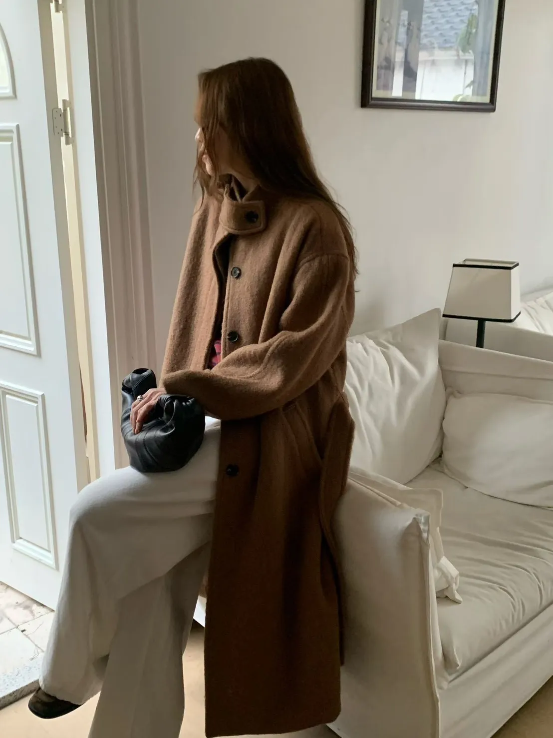 A7 1116高檔小香家立領翻領兩穿綁帶羊毛大衣