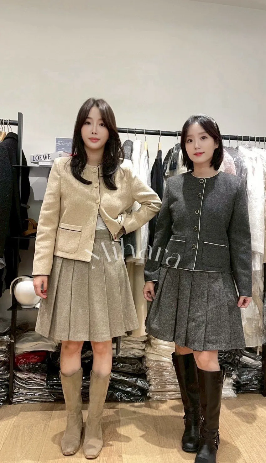 A12 1116高檔小香家人字紋百搭百褶短裙