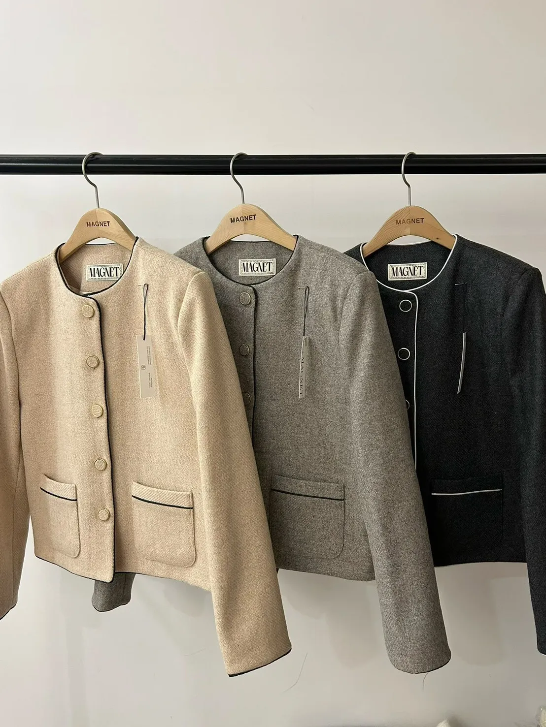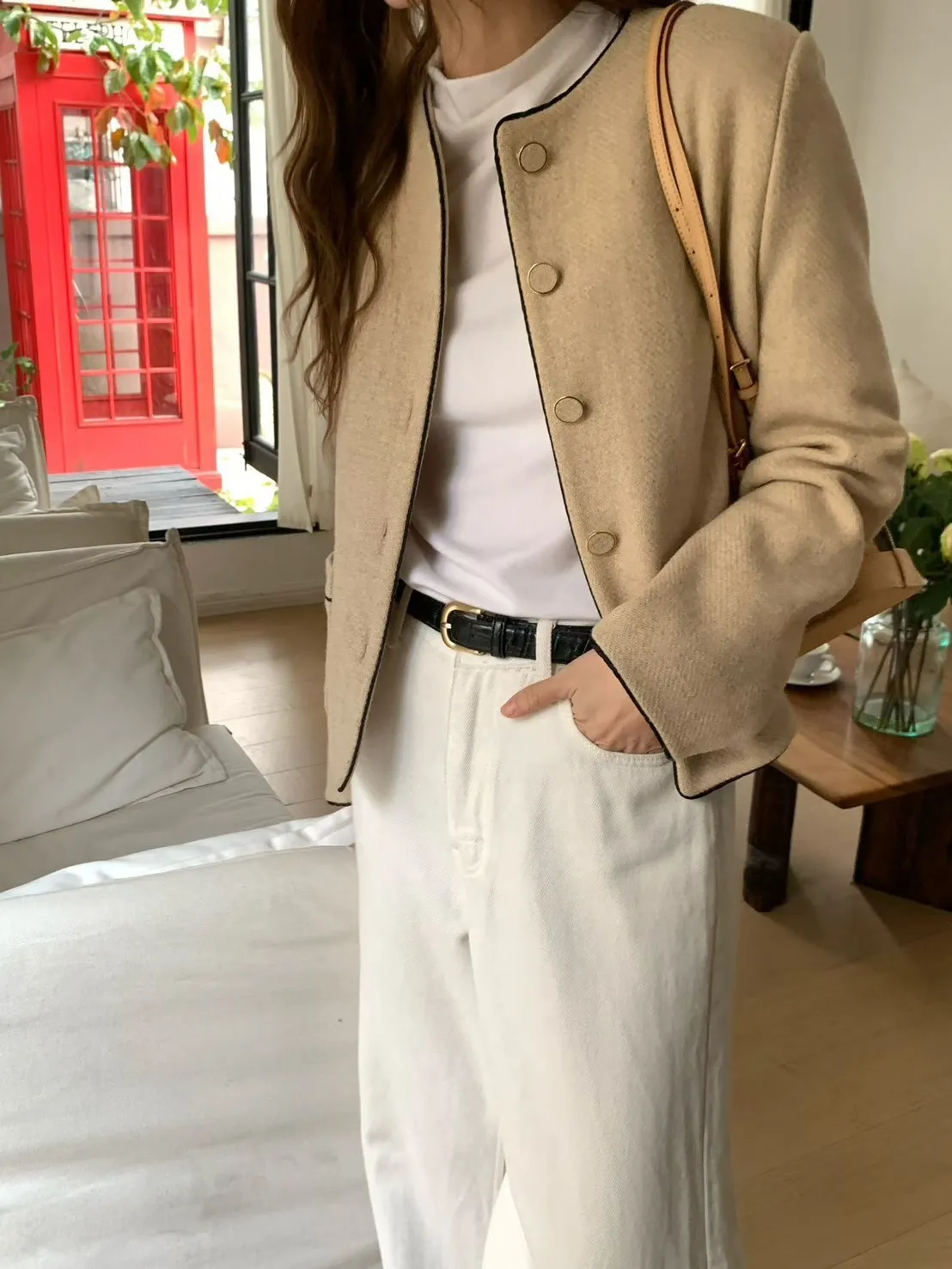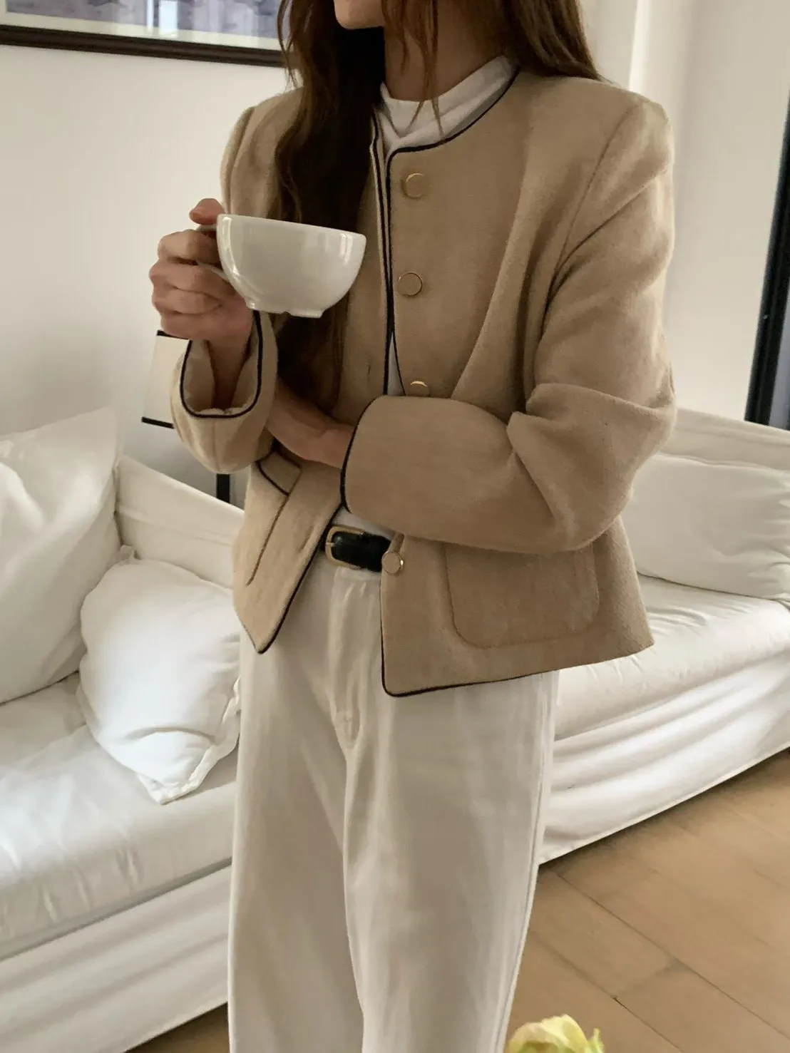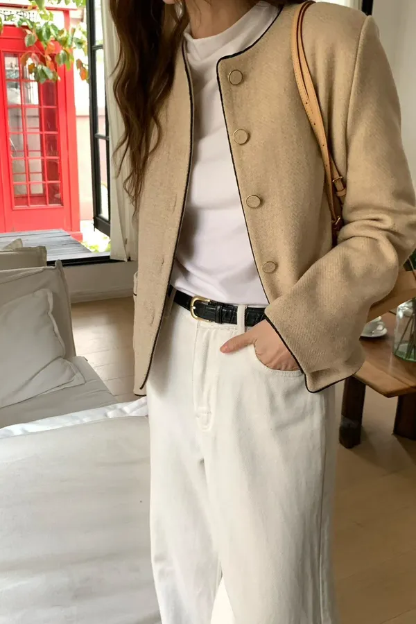 A13 1116高檔小香家質感系撞色滾邊包釦小香外套