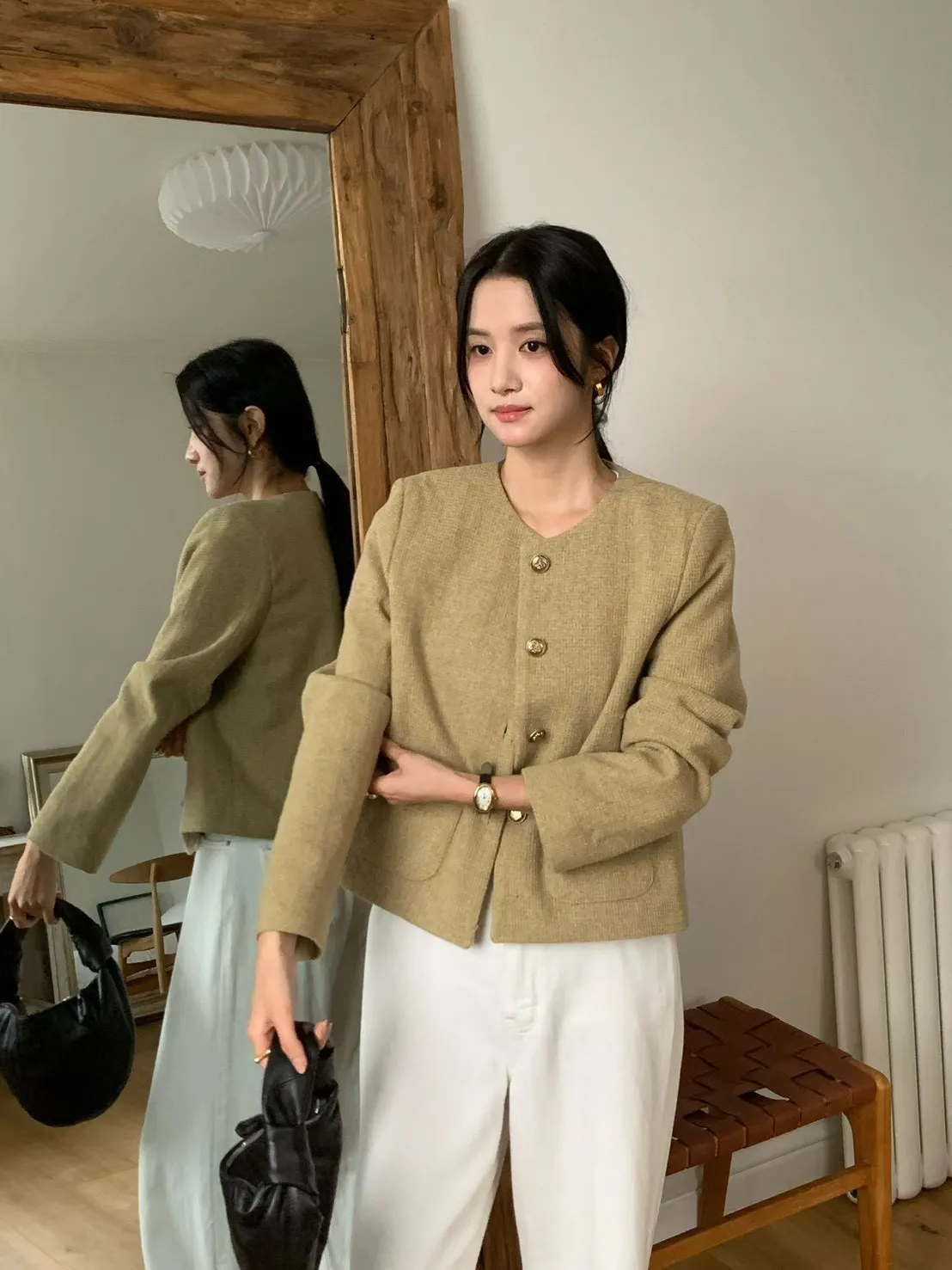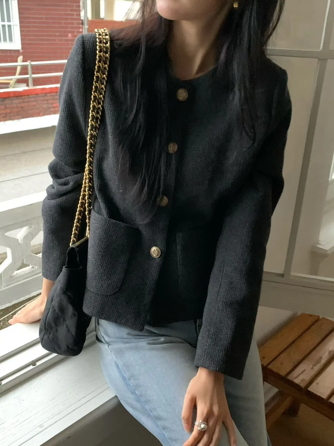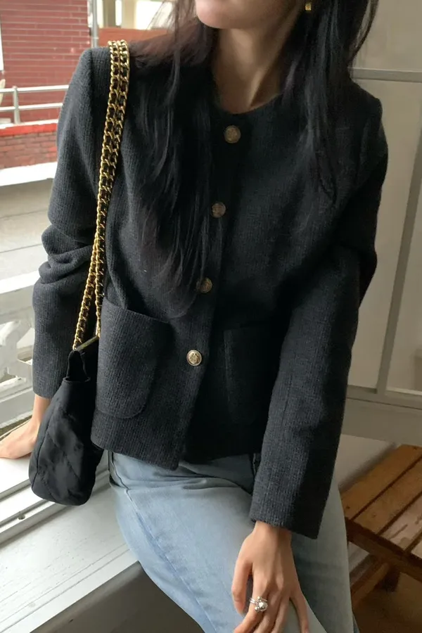 A19 1116高檔小香家圓領霧金釦小香外套