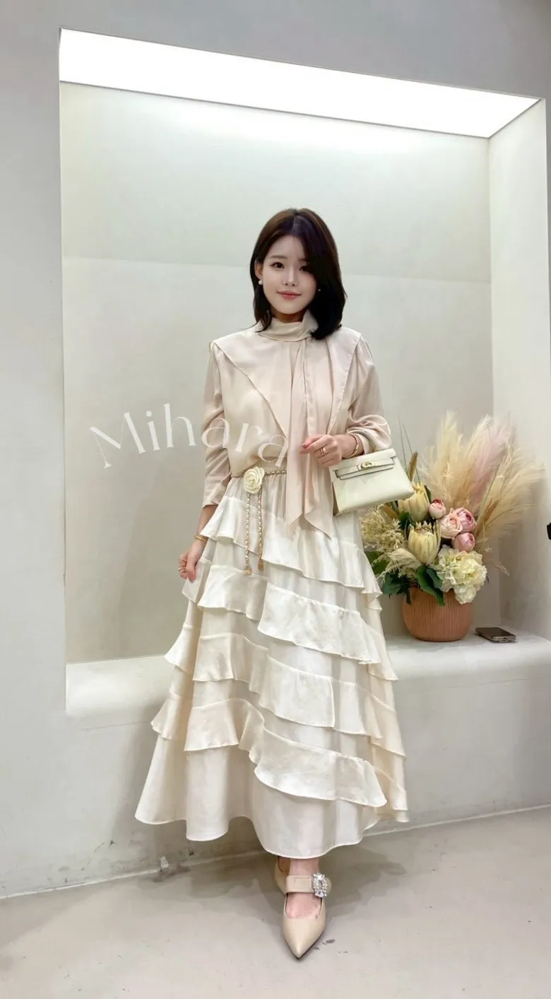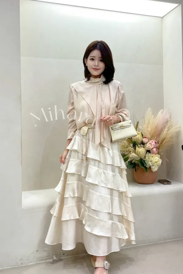 A28 1116可愛歐膩家鬆緊腰斜切造型蛋糕長裙