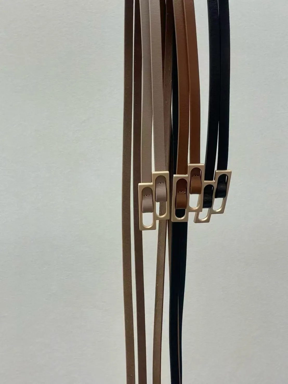 A34 1116可愛歐膩家霧金長方釦真皮細腰帶