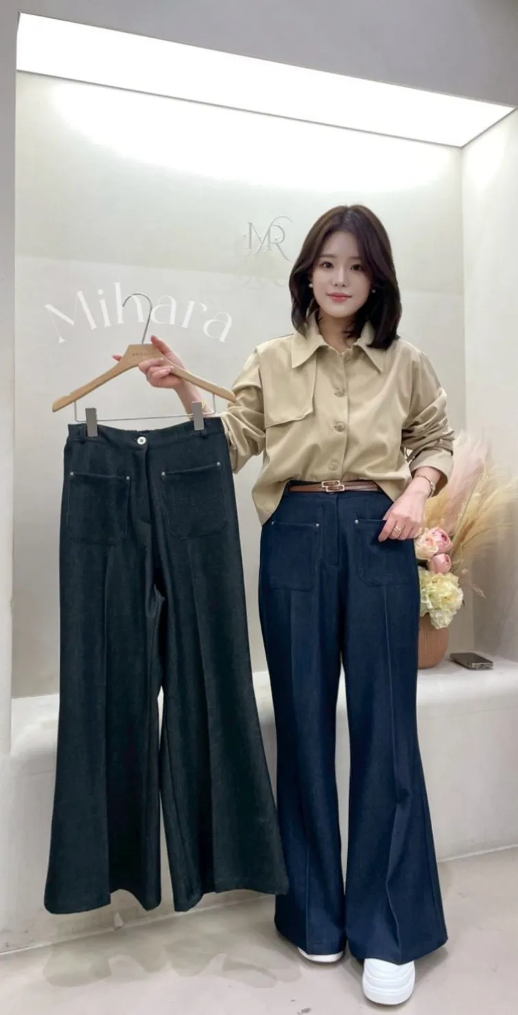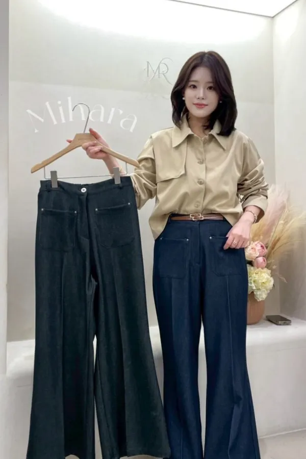 A40 1116可愛歐膩家後鬆緊雙口袋立體中線長腿褲