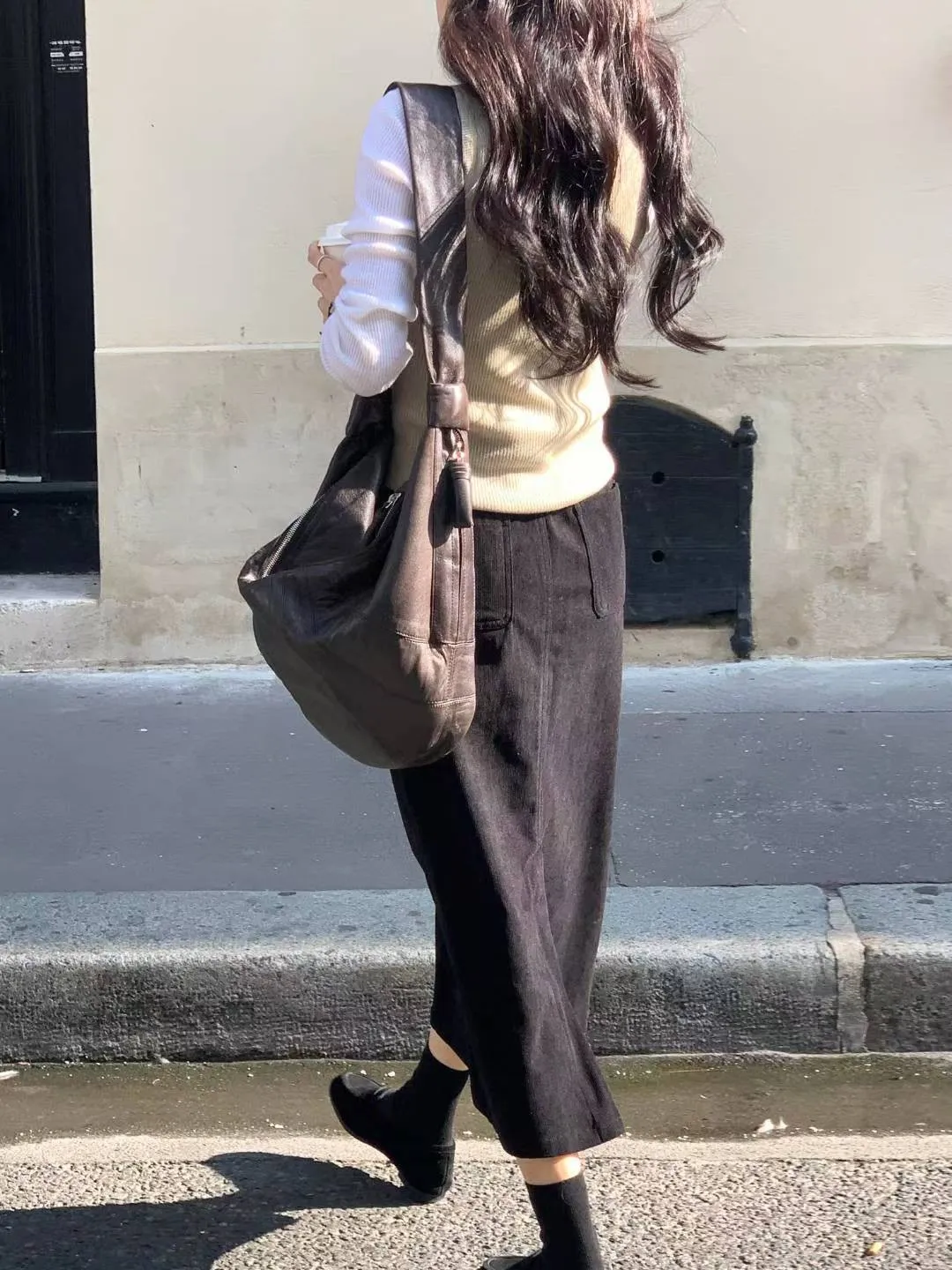 E19高檔D家燈芯絨口袋裙3色(S/M/L)