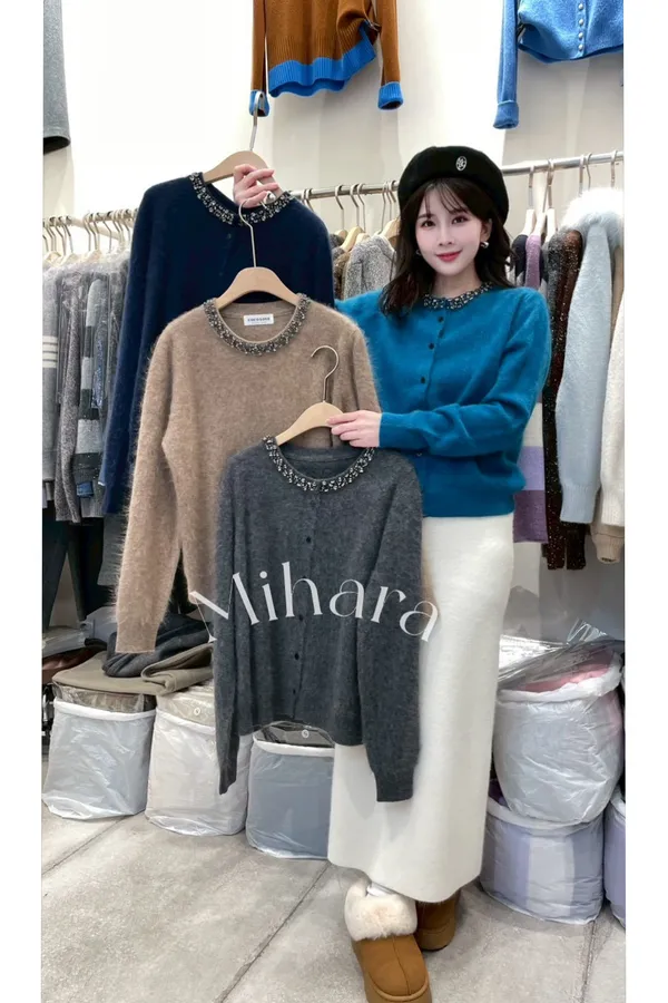 A13 1118Love針織家圓領亮鑽排扣毛衣