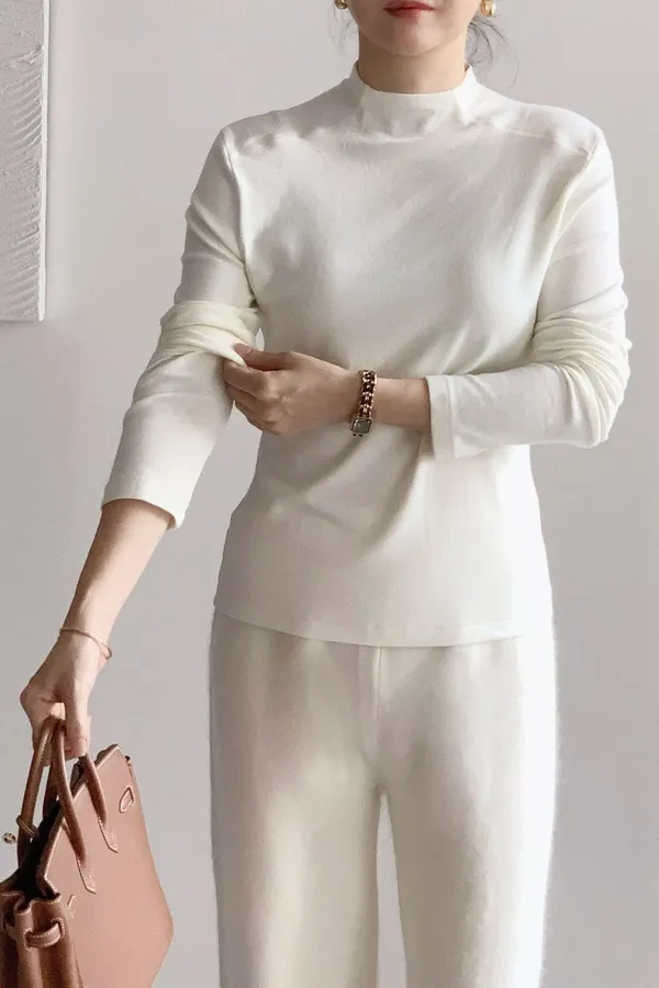 A25 1118高檔質感家半領親膚羊毛混紡上衣