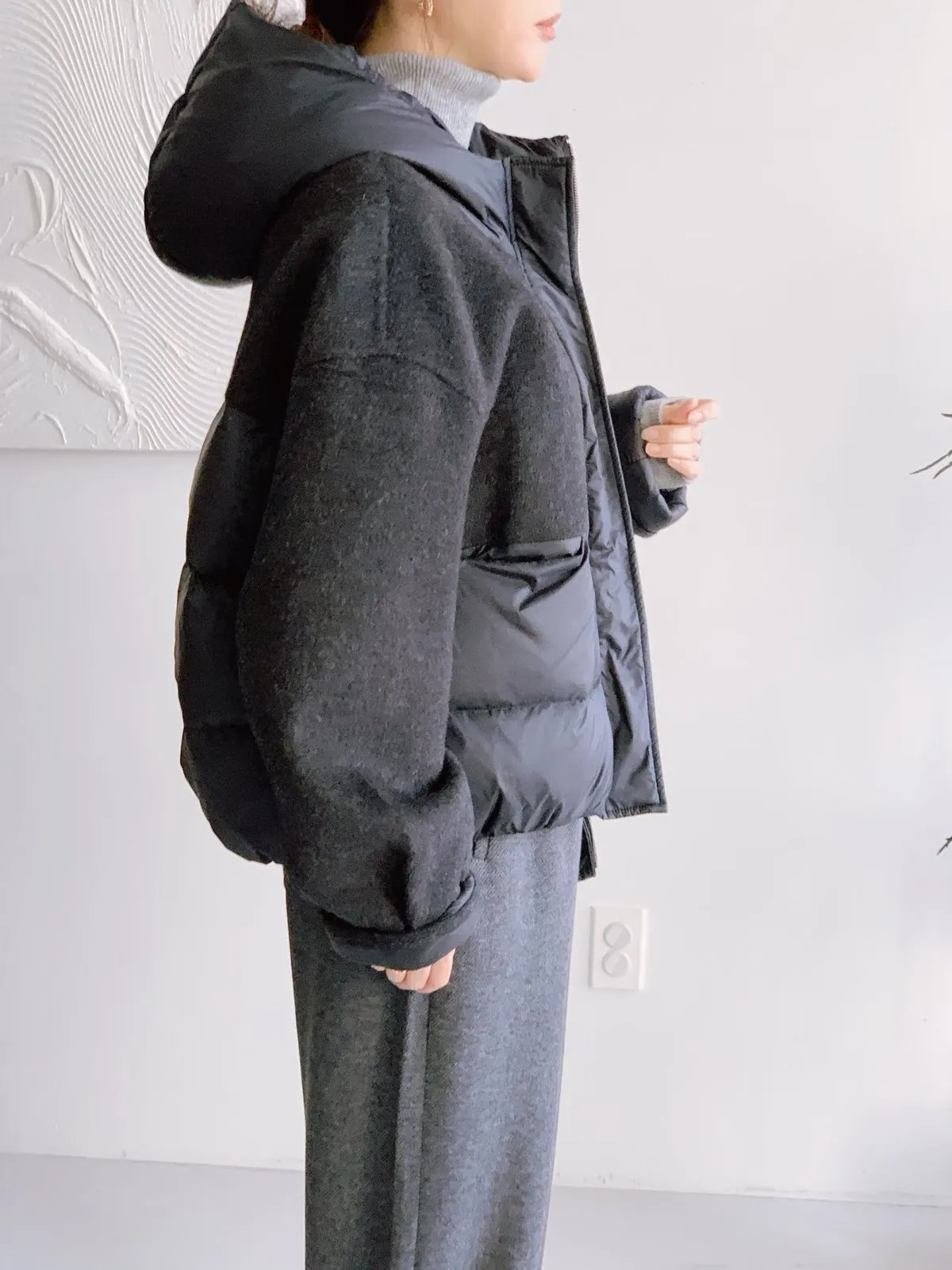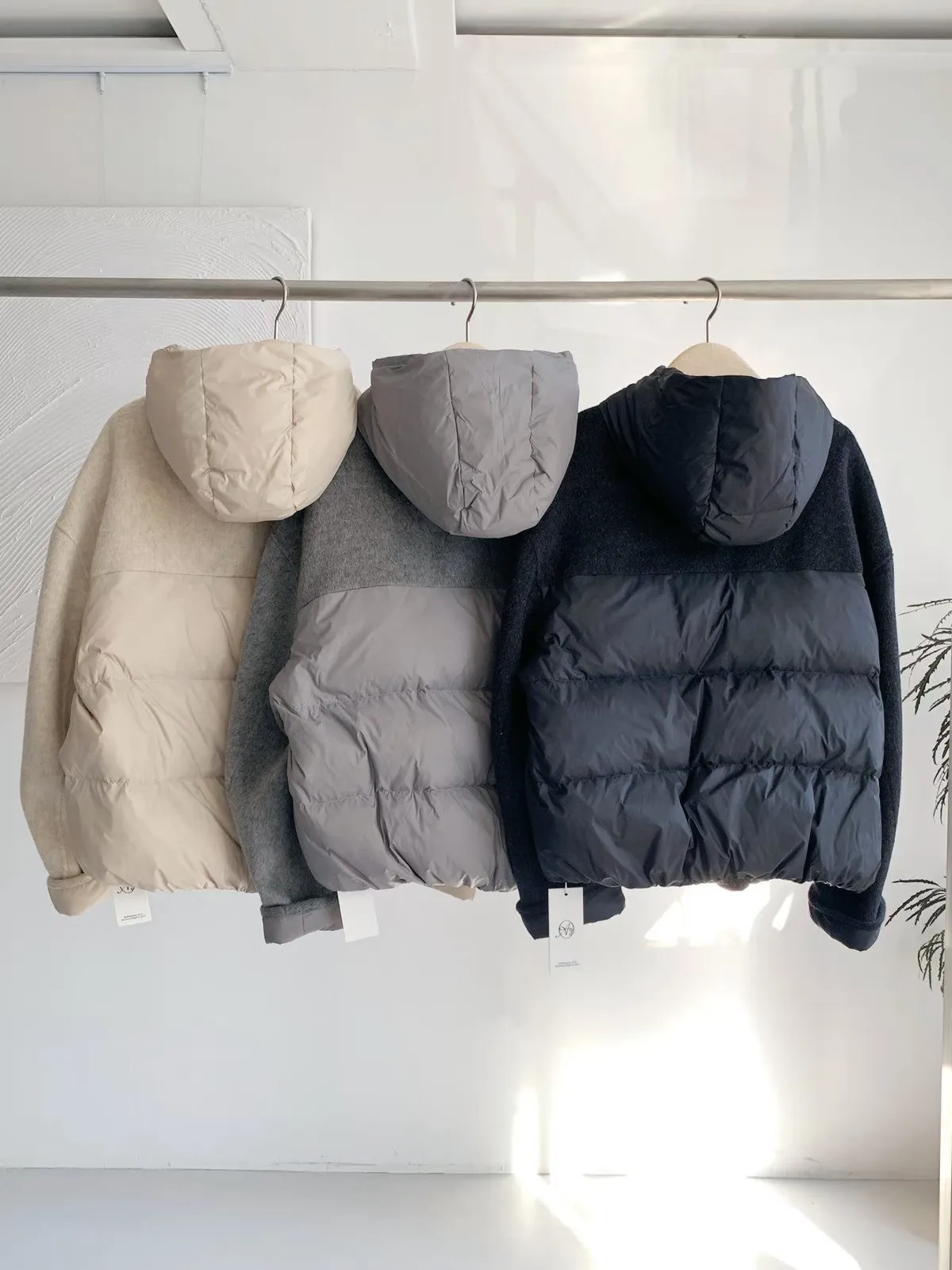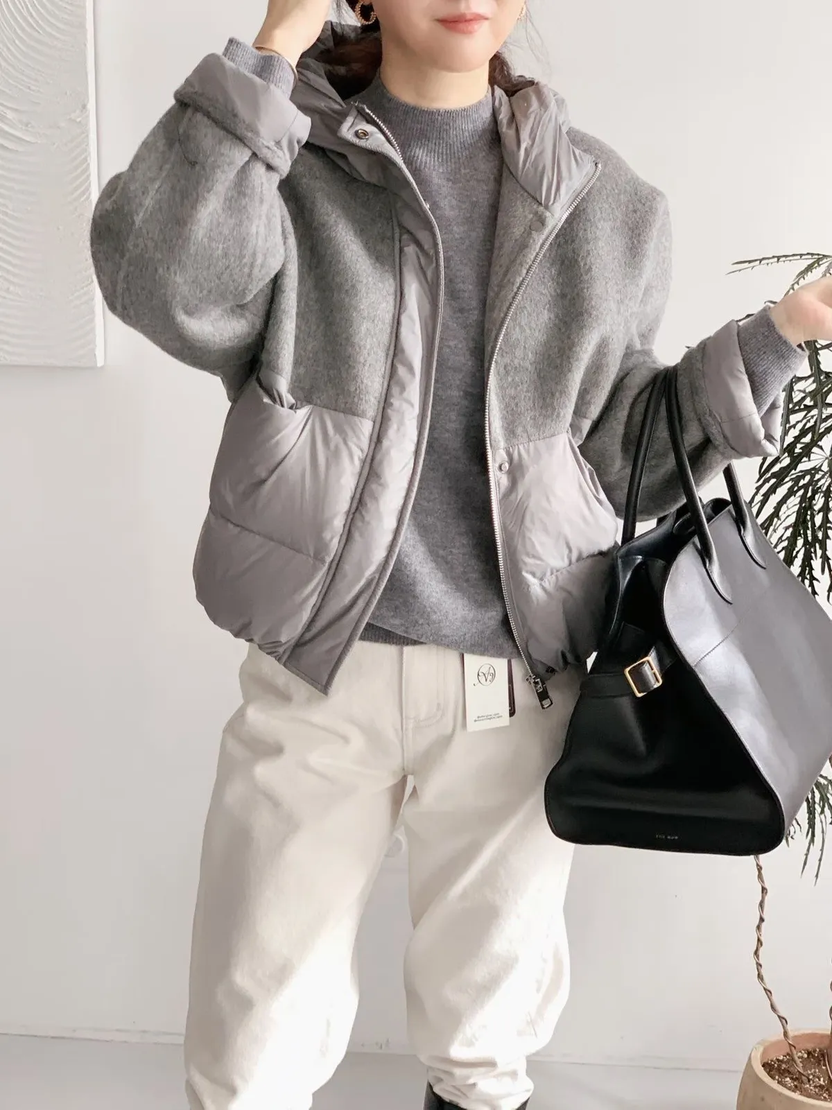 A27 1118高檔質感家拼接羽絨連帽羊毛外套