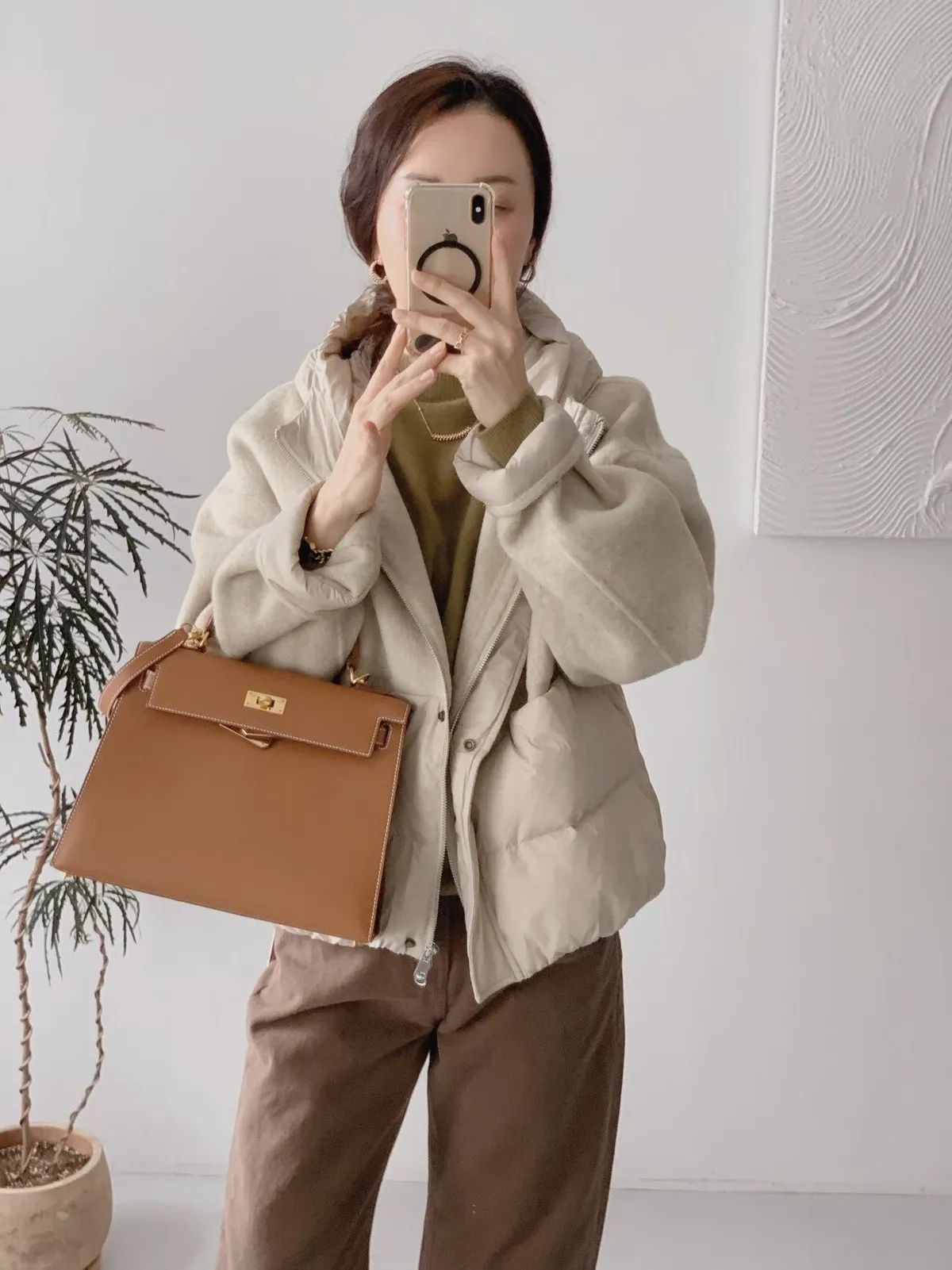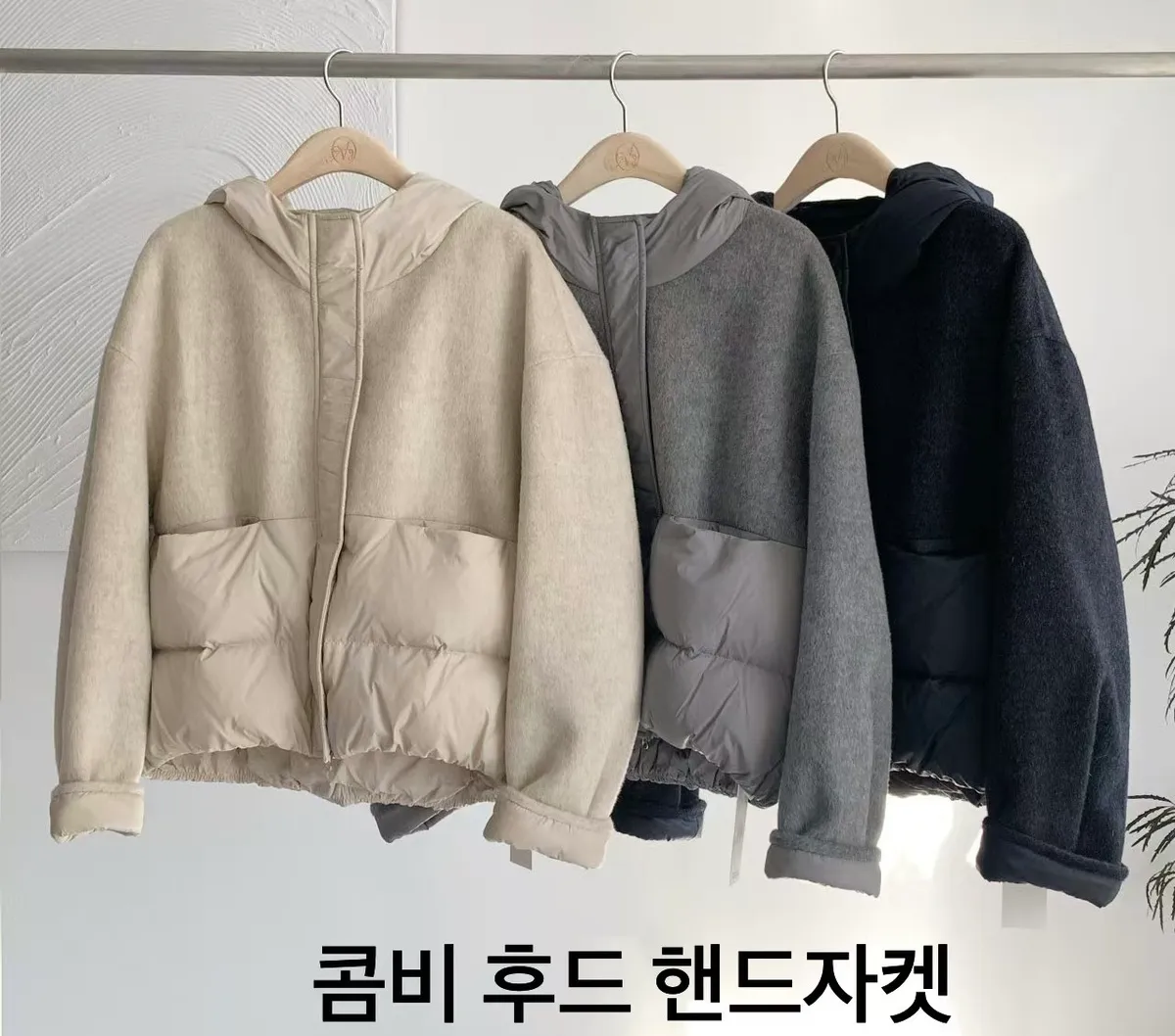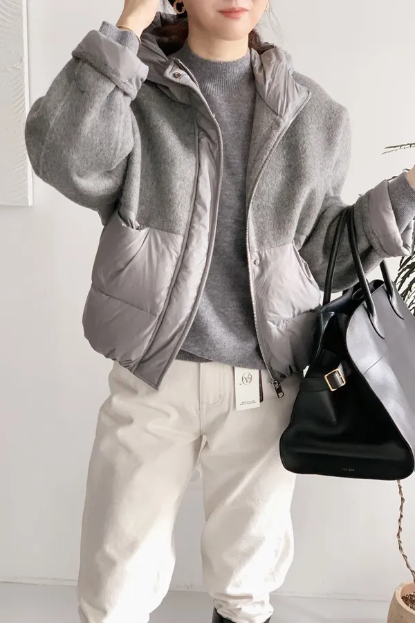 A27 1118高檔質感家拼接羽絨連帽羊毛外套