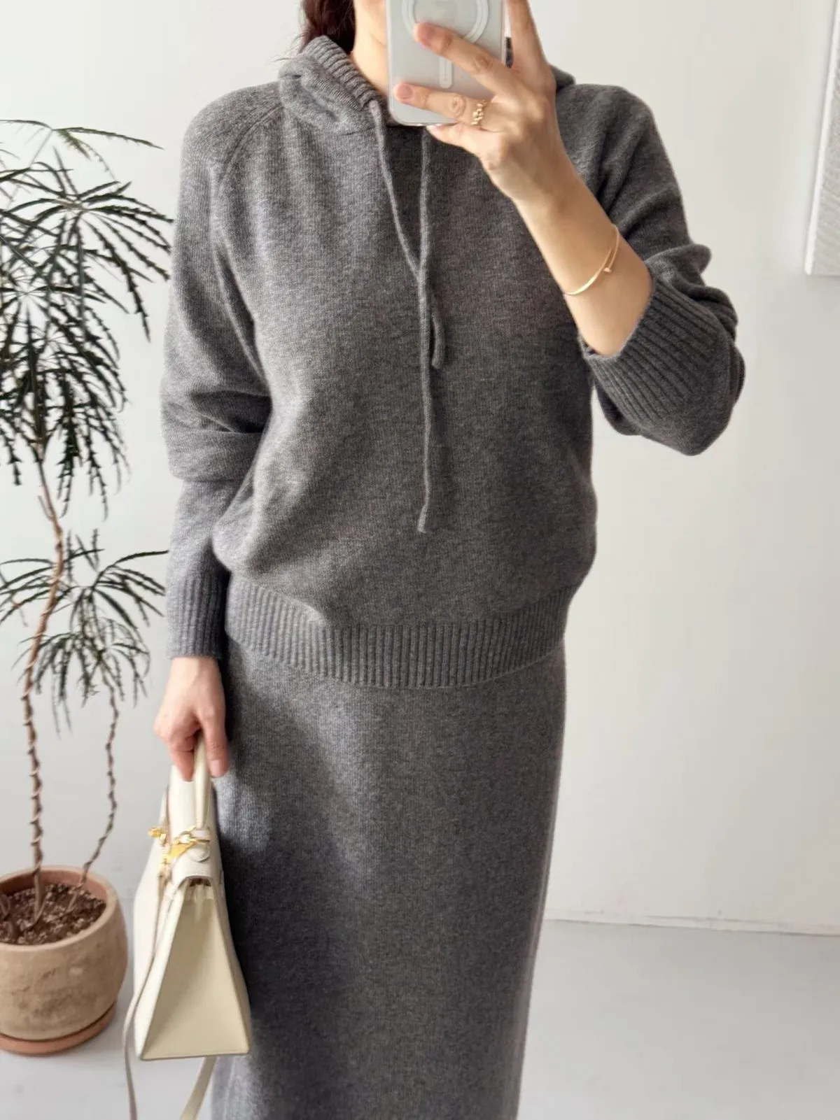 A35 1118高檔質感家連帽抽繩羊毛針織上衣