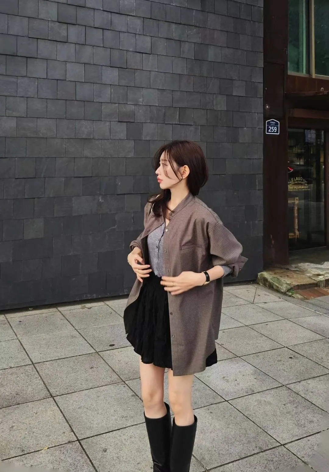 ★搭配:亨利領天絲羊毛T+miu里miu氣小褲裙