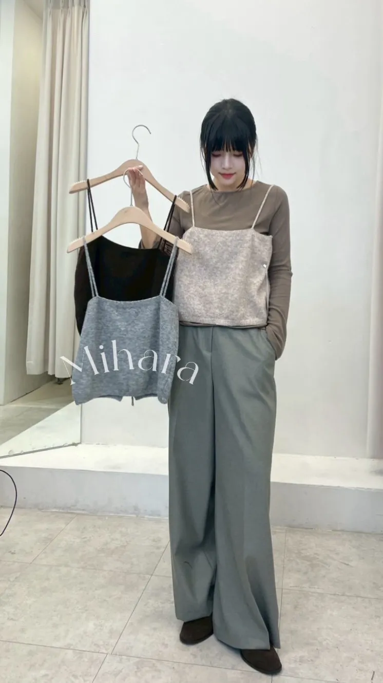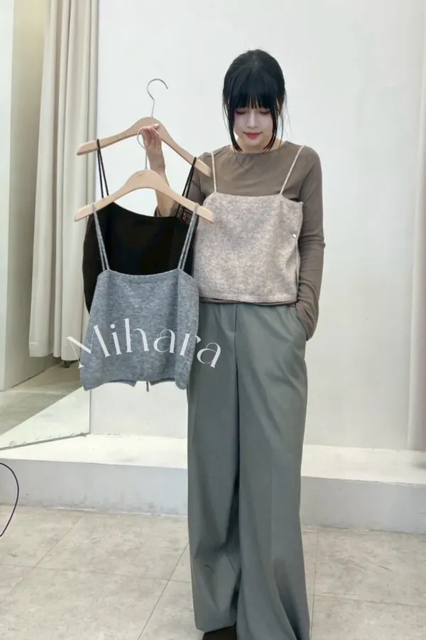 A18 1120好穿針織家後綁帶細肩帶羊毛混壓克力平口背心(兩面穿)