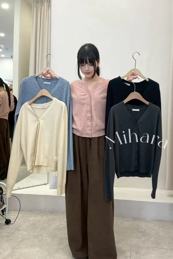 A26 1120好穿針織家抗起球羊毛混羊絨V領外套