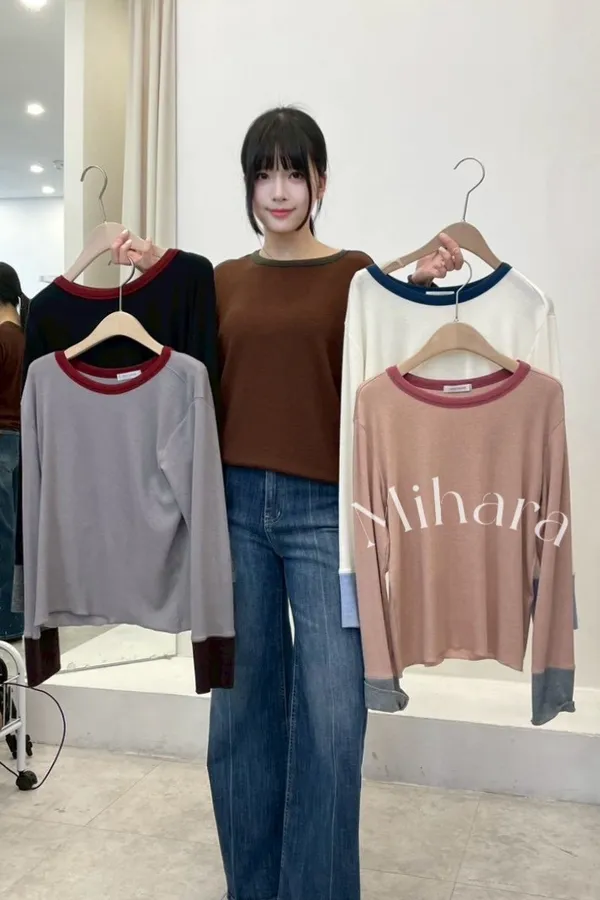 A37 1120好穿針織家撞色滾邊圓領棉質T恤