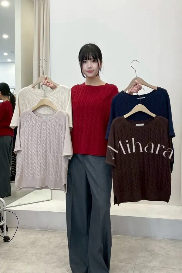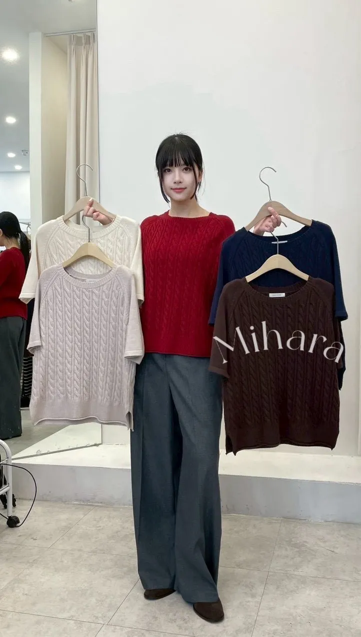 A38 1120好穿針織家側開衩麻花編圓領抗起球羊毛混羊絨針織毛衣