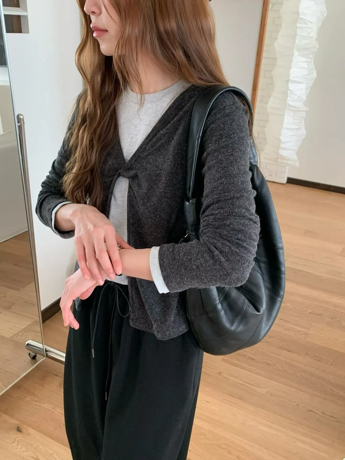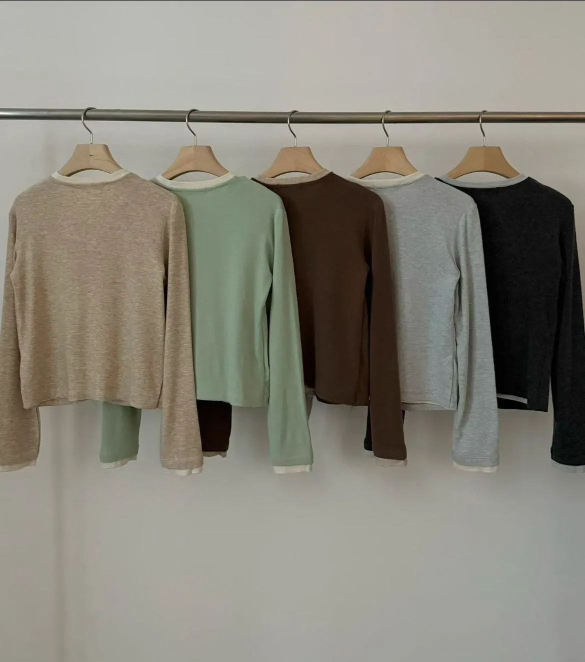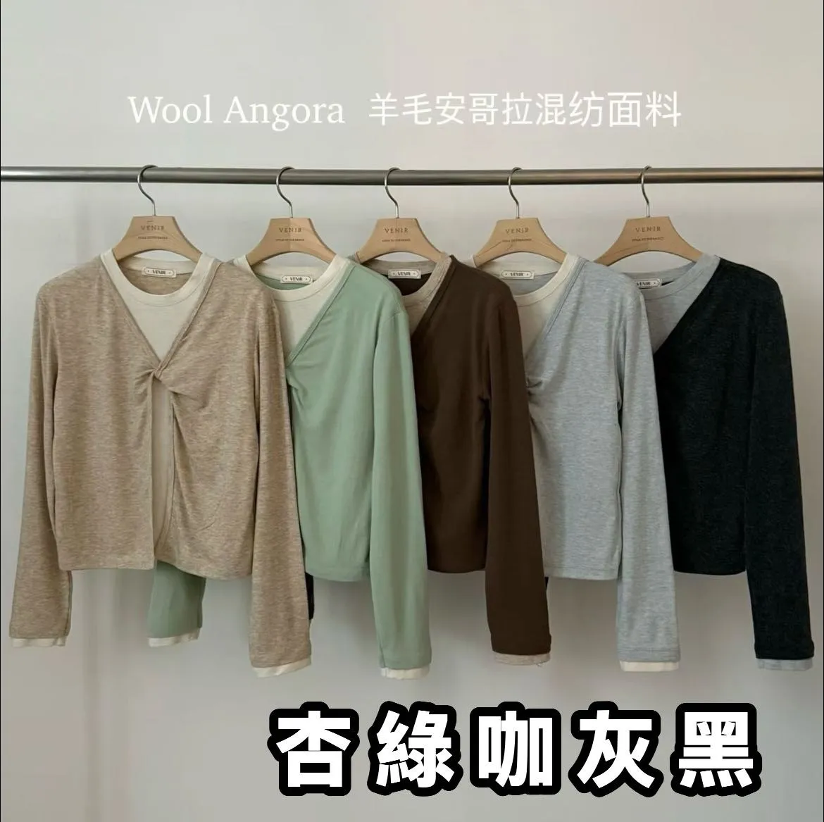 C29高檔捲髮歐膩假兩件撞色安哥拉混紡上衣