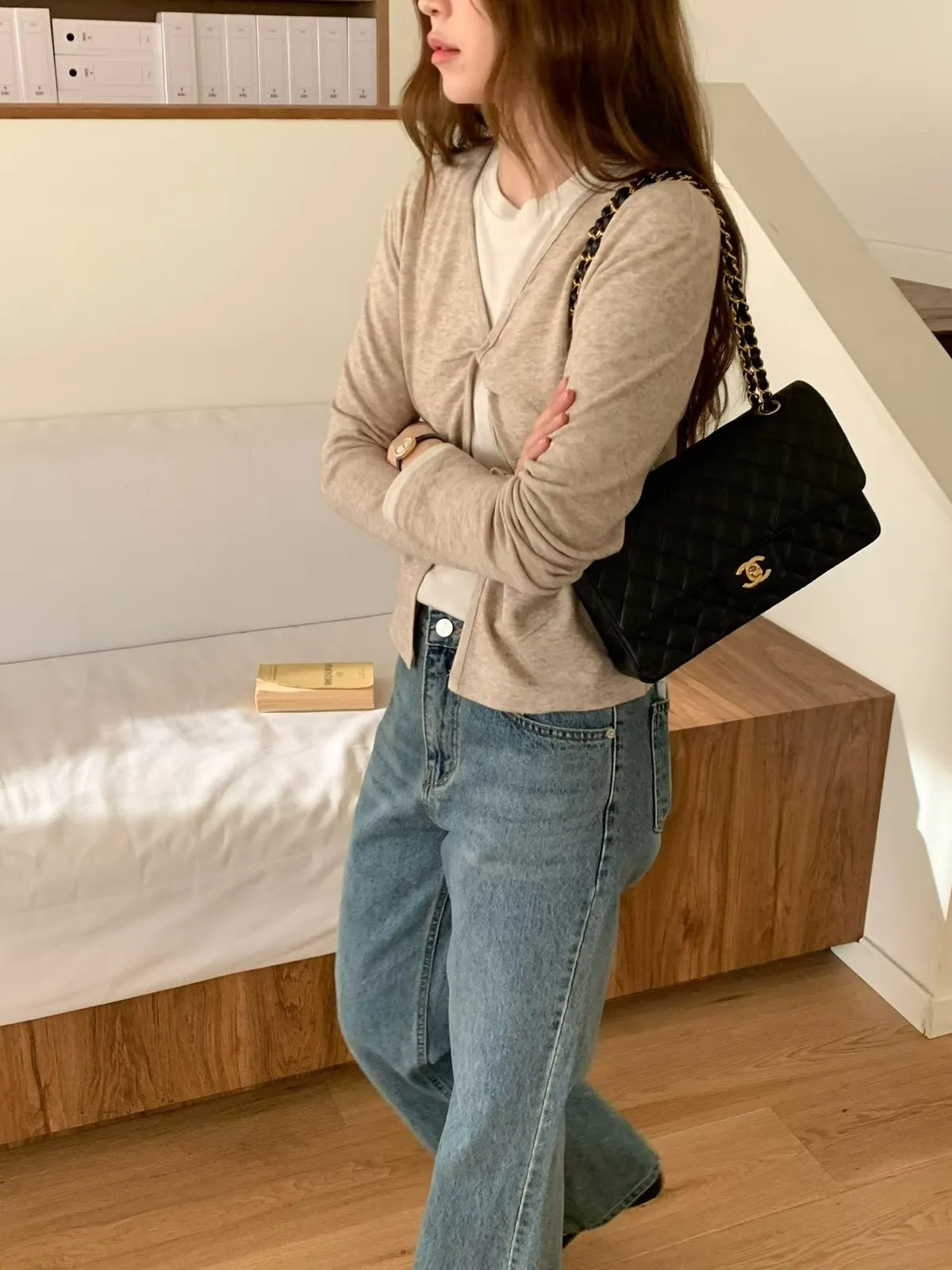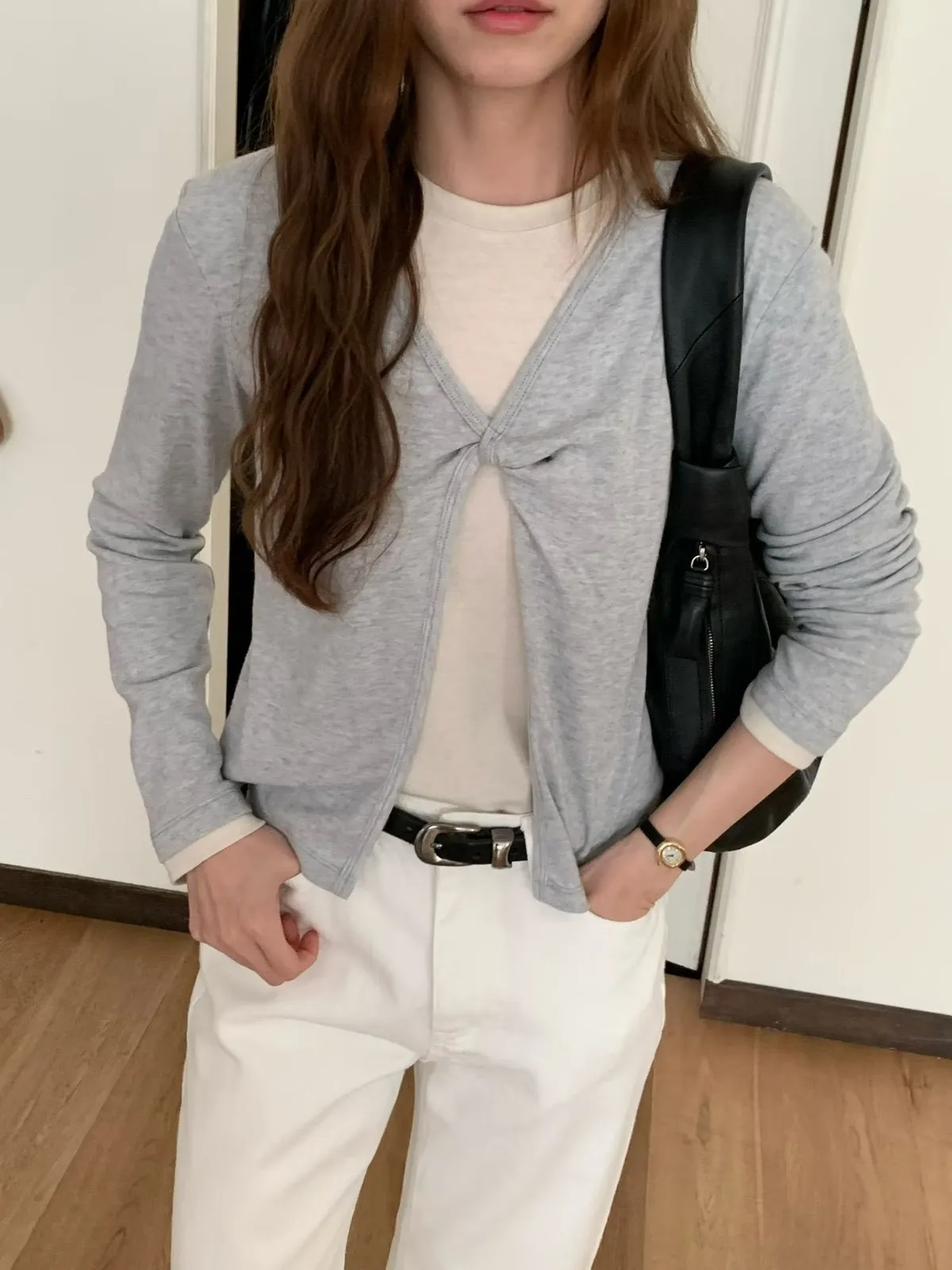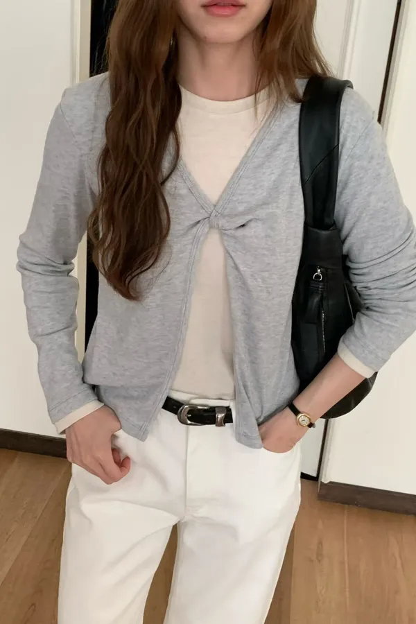 C29高檔捲髮歐膩假兩件撞色安哥拉混紡上衣