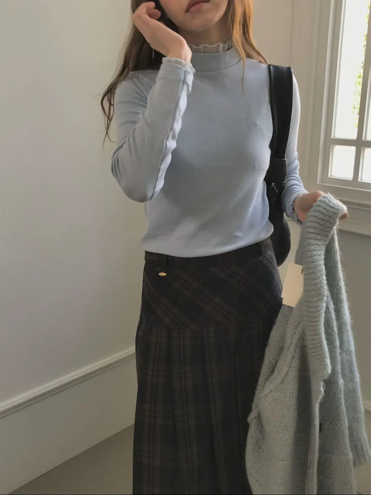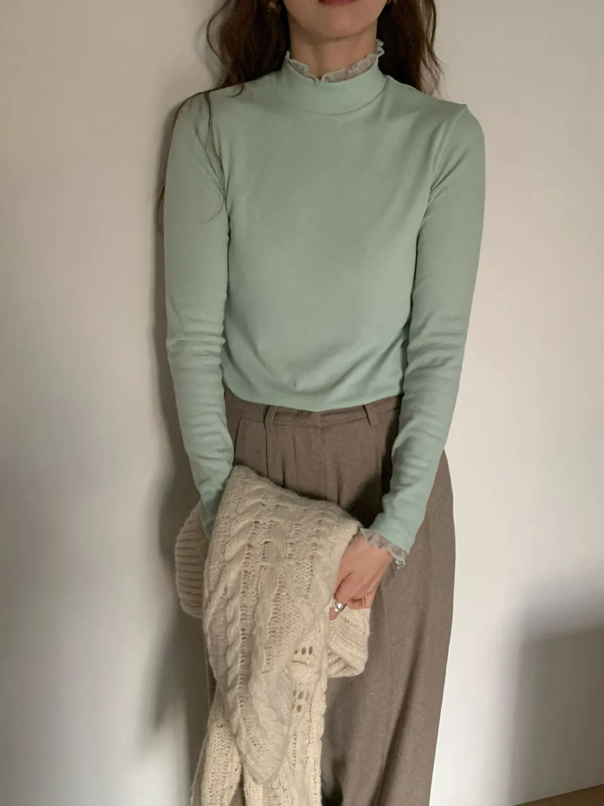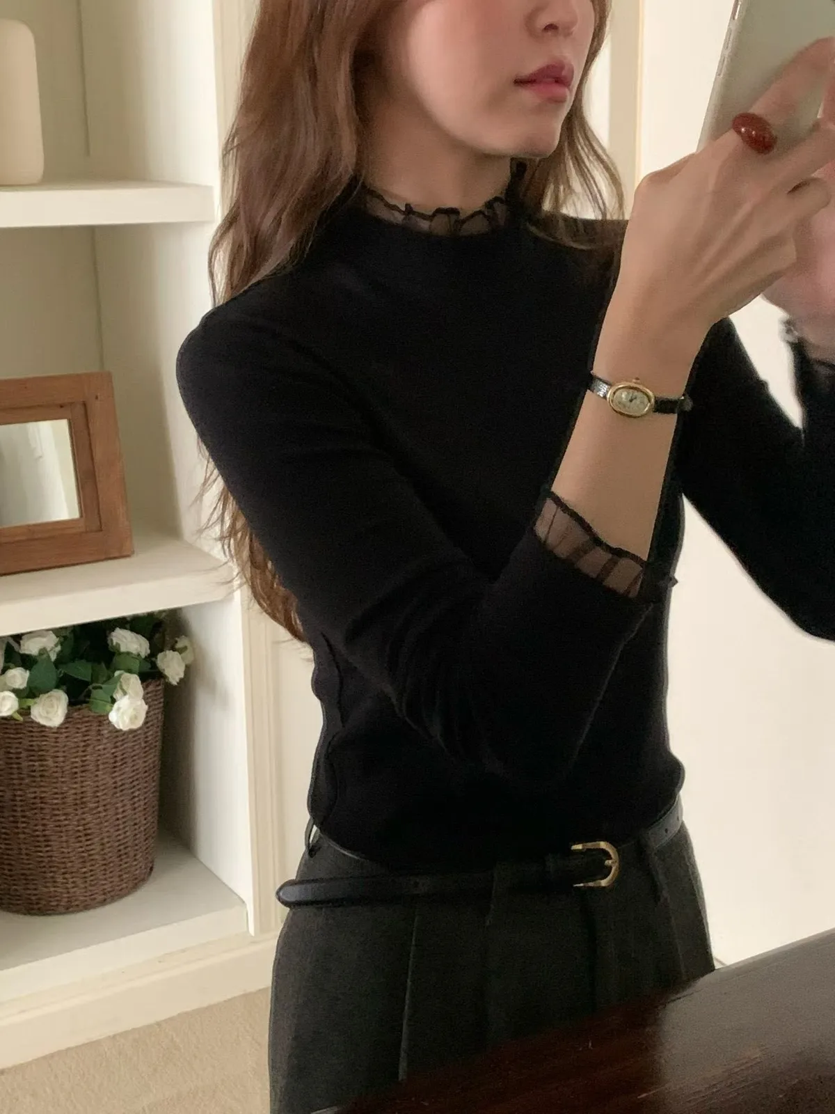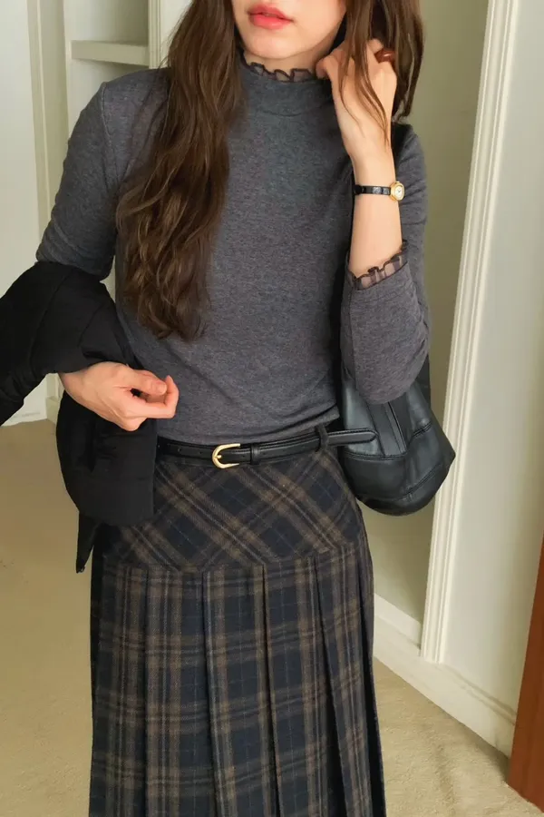 C23高檔捲髮歐膩拼紗雙層領羊毛30天絲9 混紡上衣