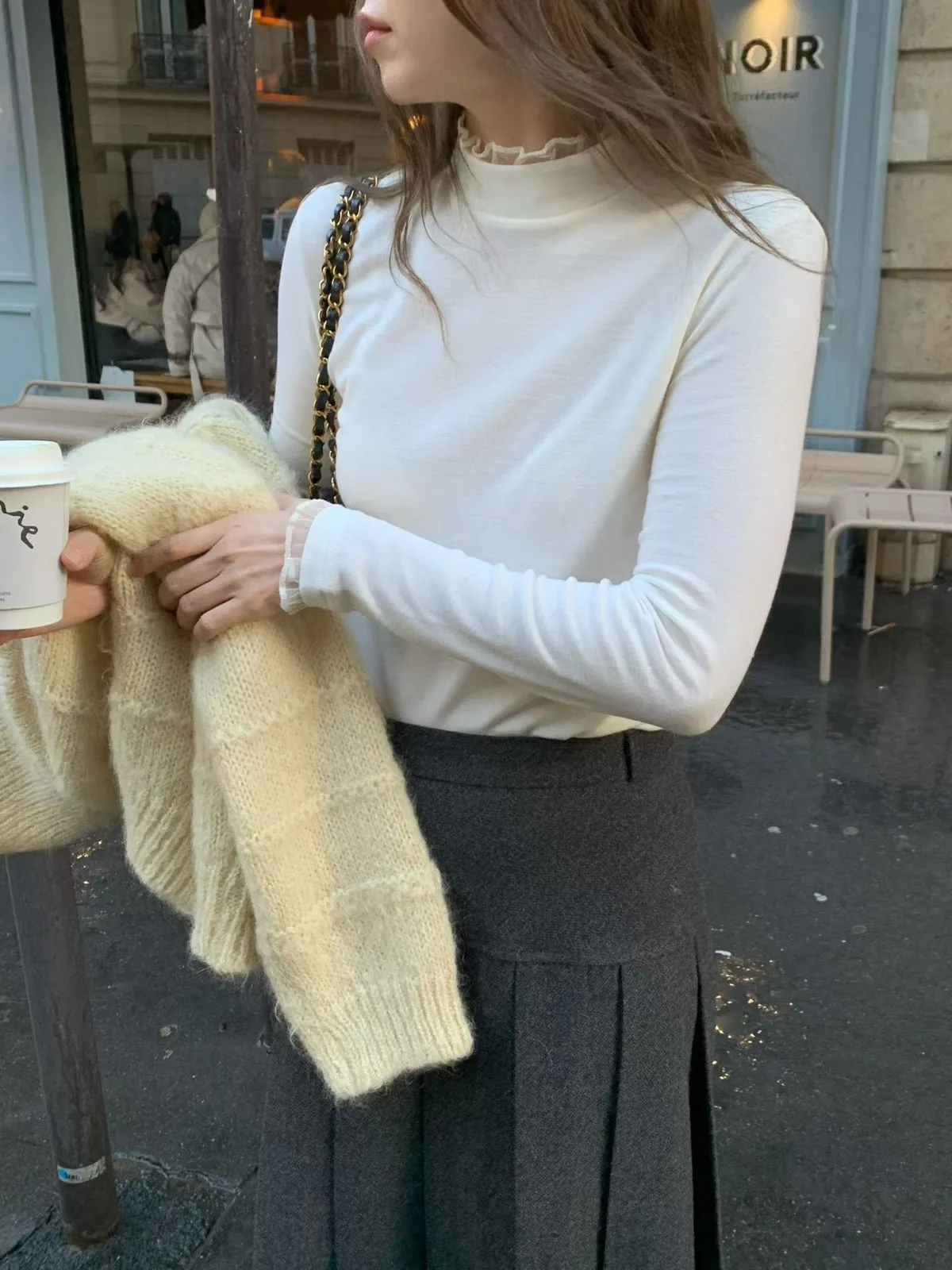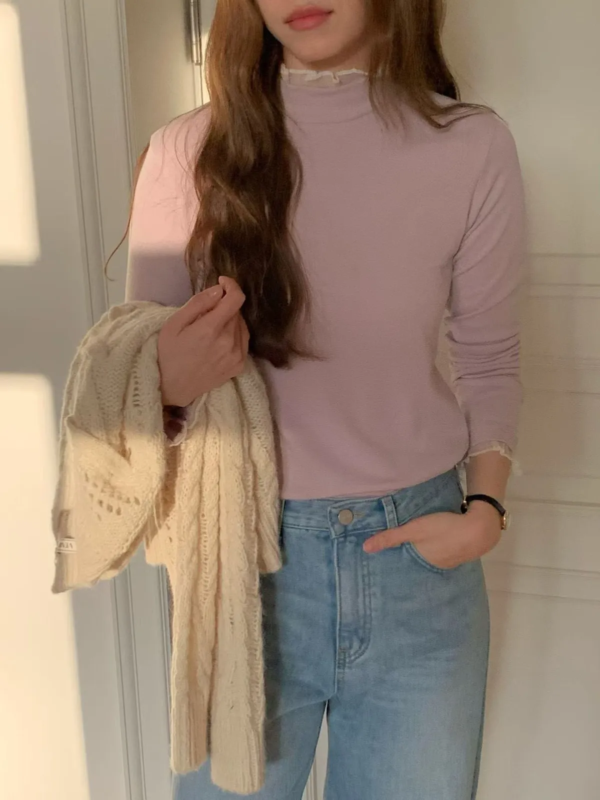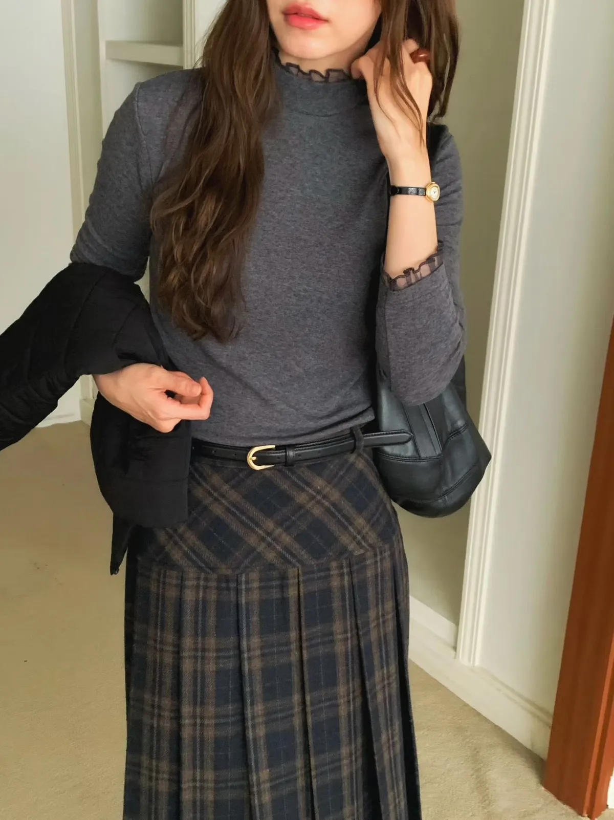 C23高檔捲髮歐膩拼紗雙層領羊毛30天絲9 混紡上衣