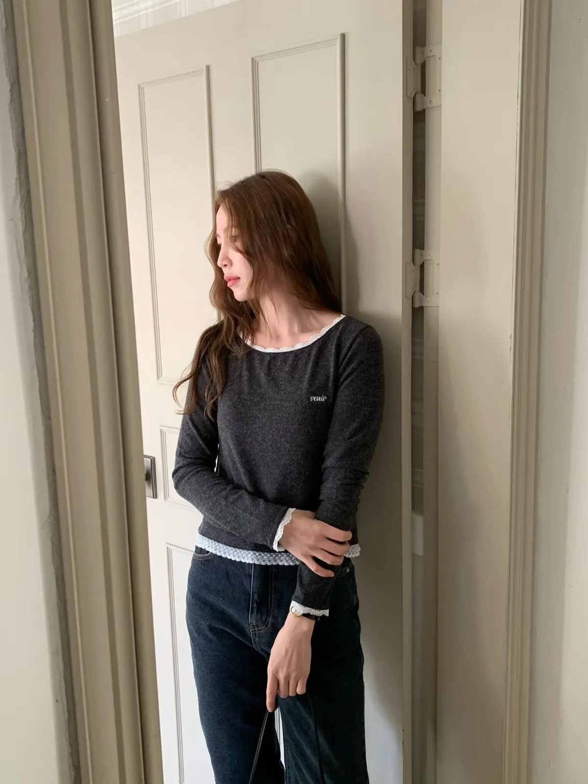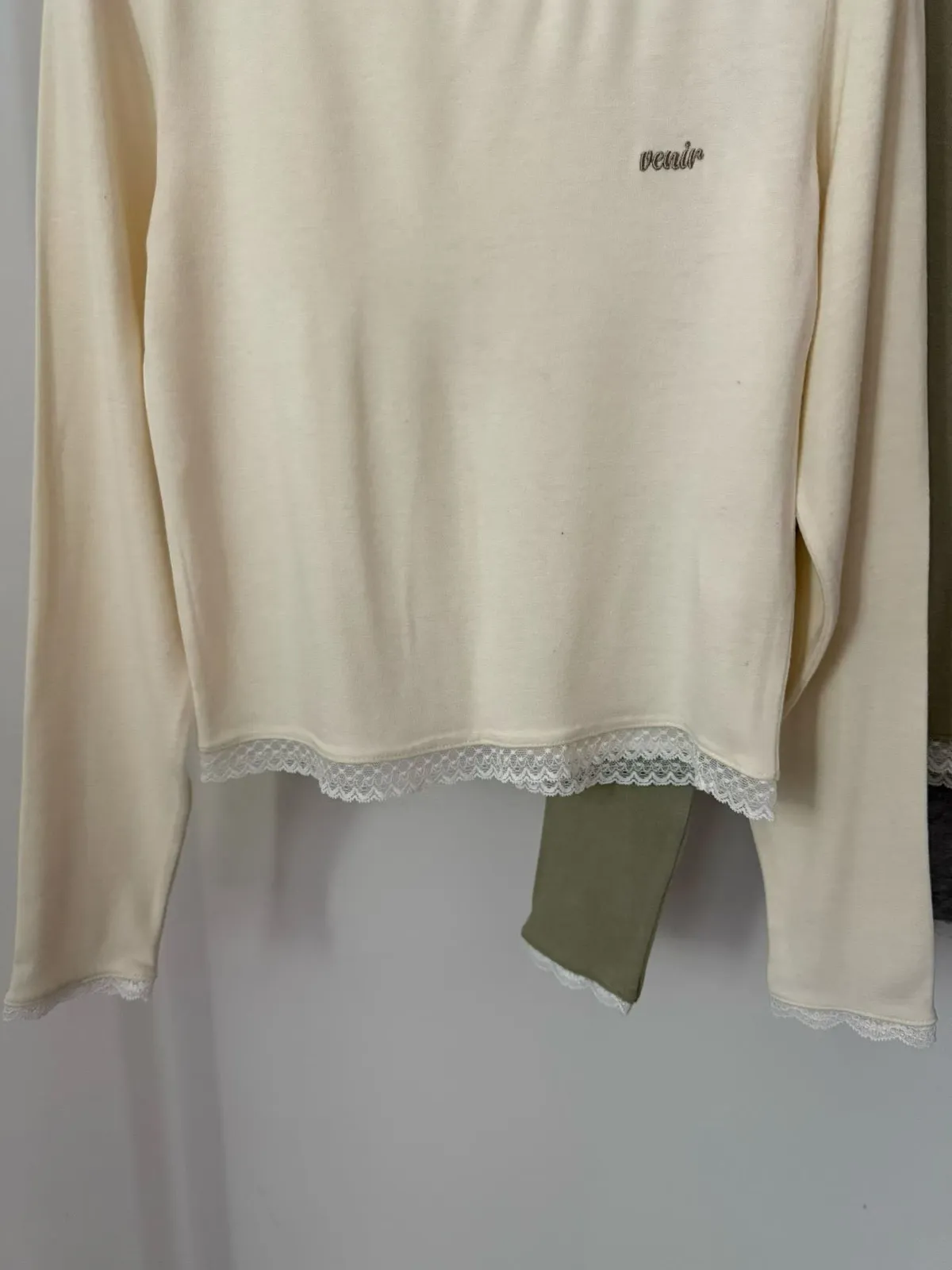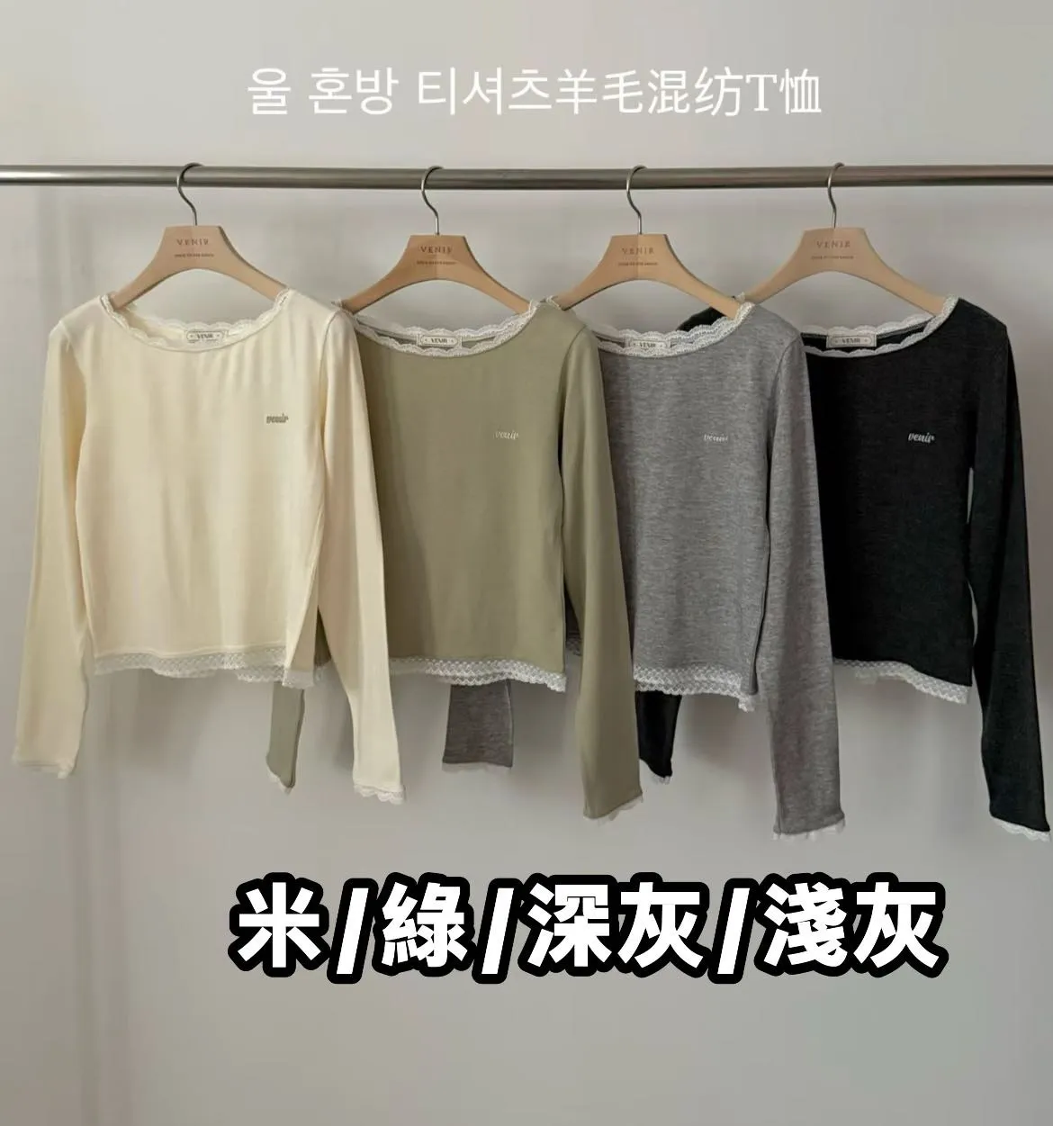 C19高檔捲髮歐膩蕾絲滾邊羊毛混紡T