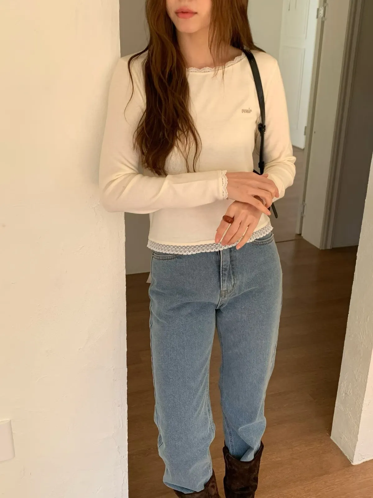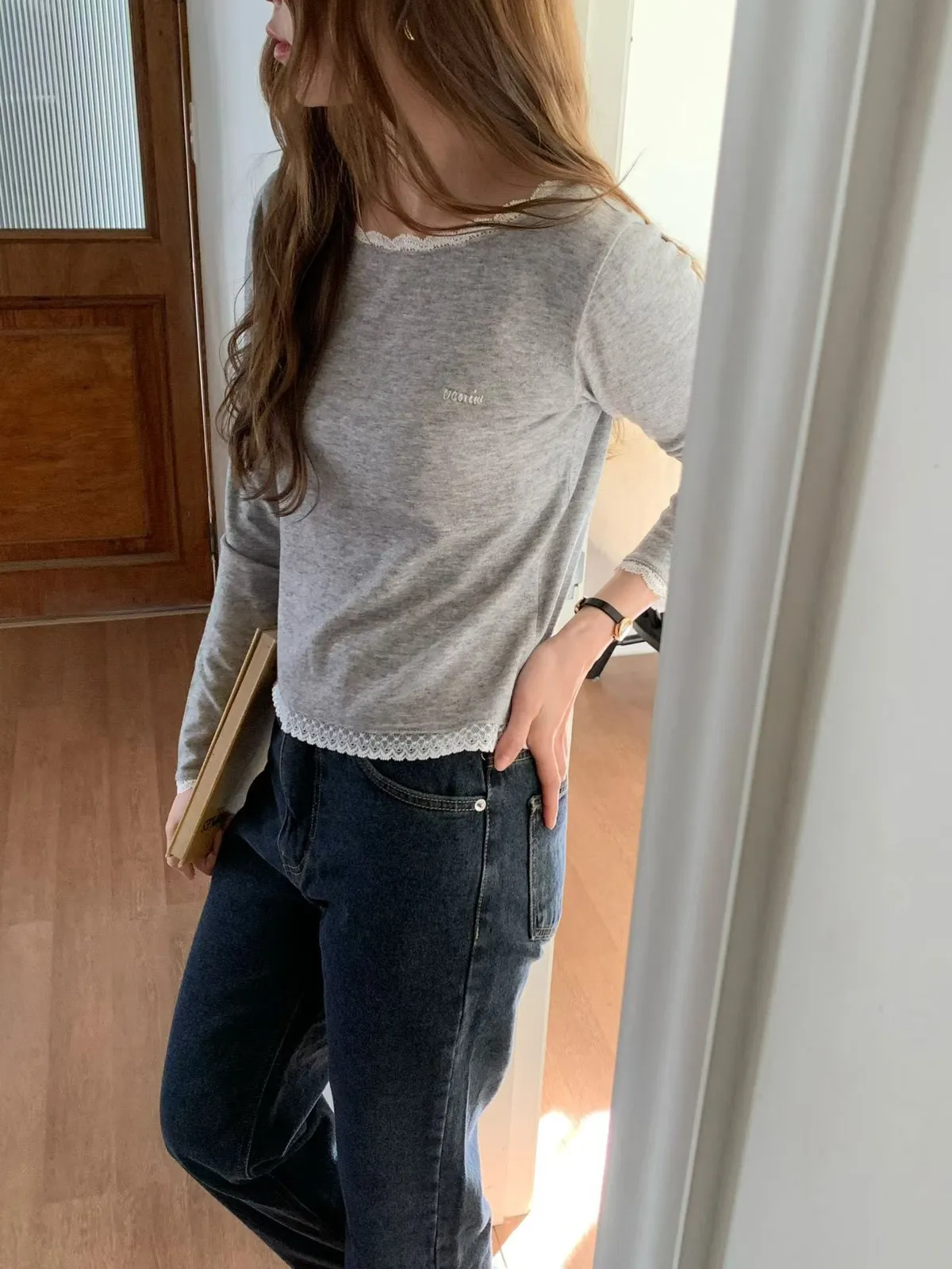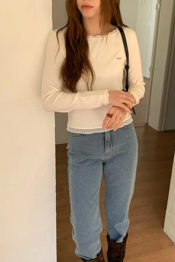 C19高檔捲髮歐膩蕾絲滾邊羊毛混紡T
