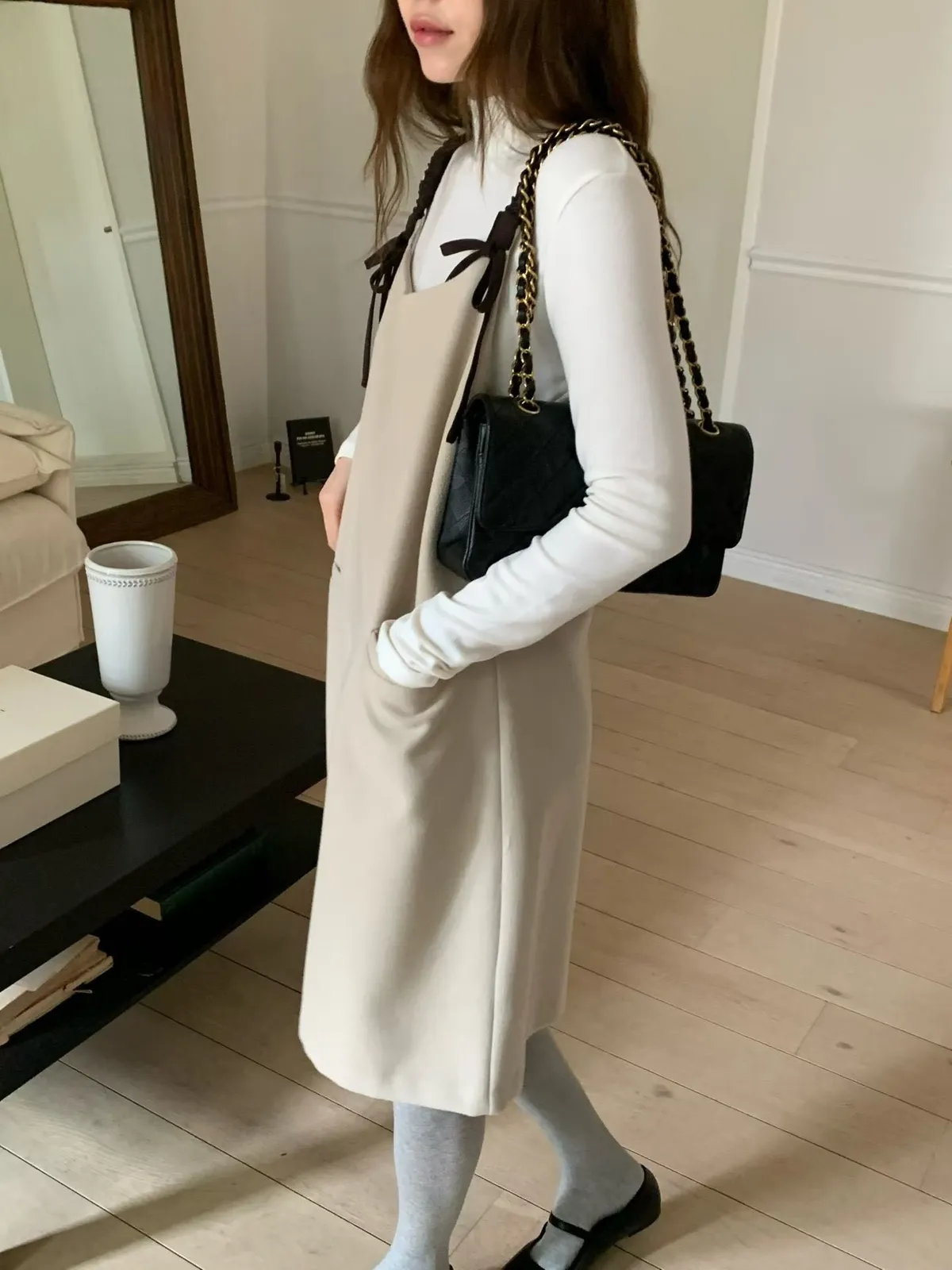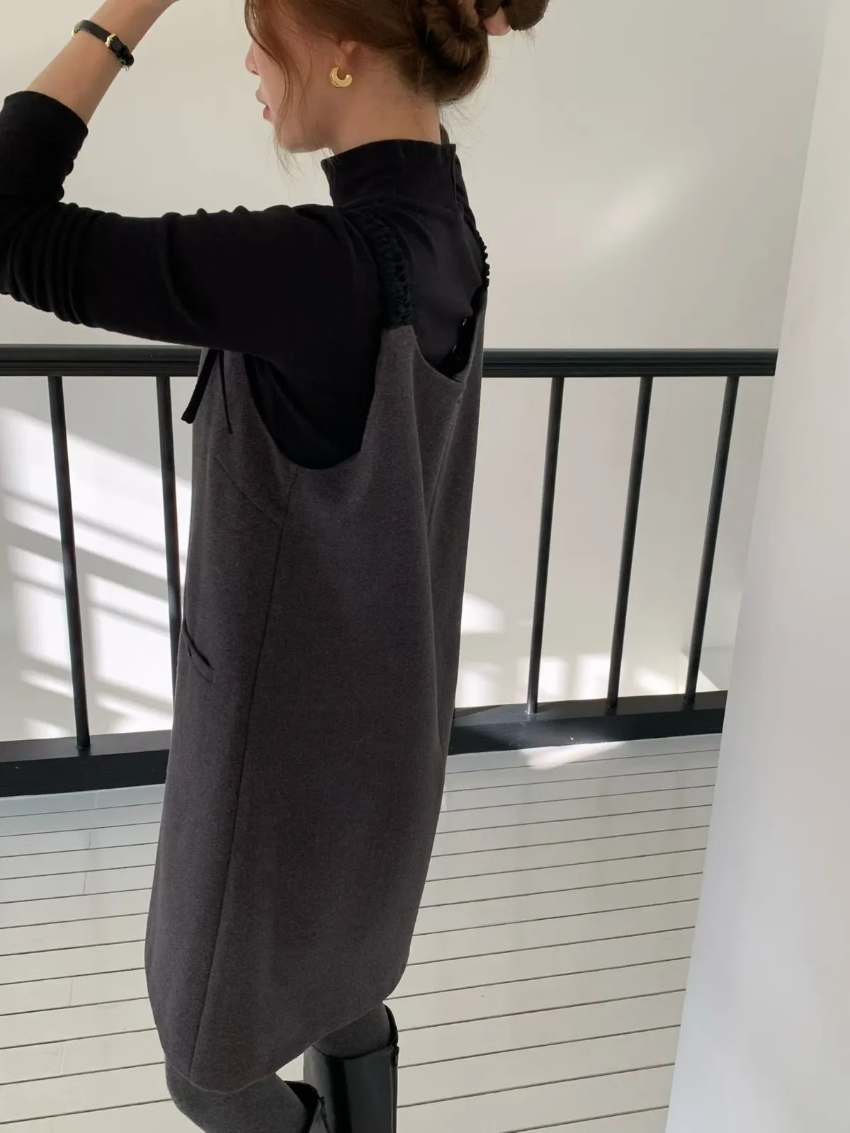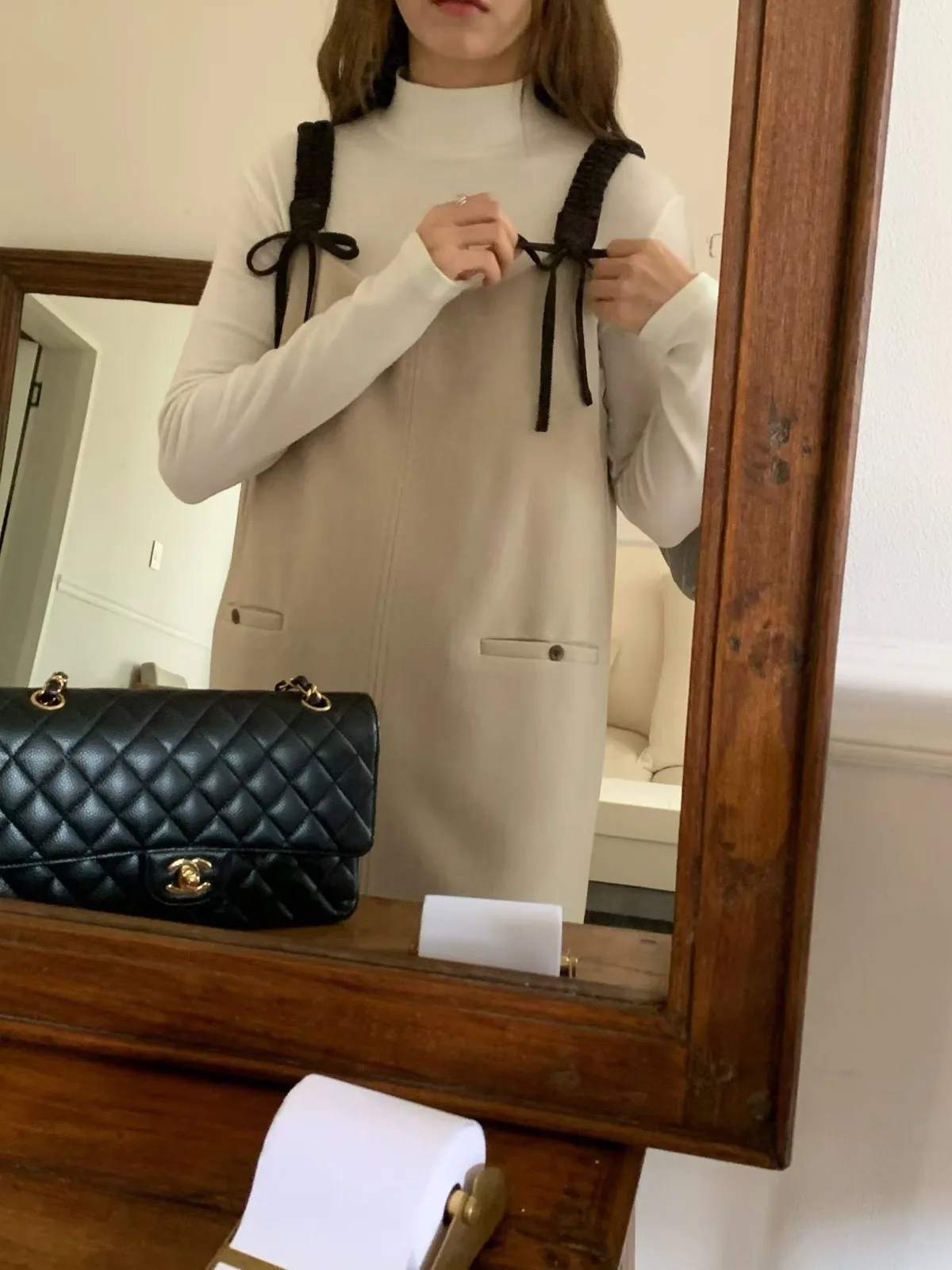 C6(強推)高檔捲髮歐膩雙蝴蝶結羊毛混紡吊帶裙