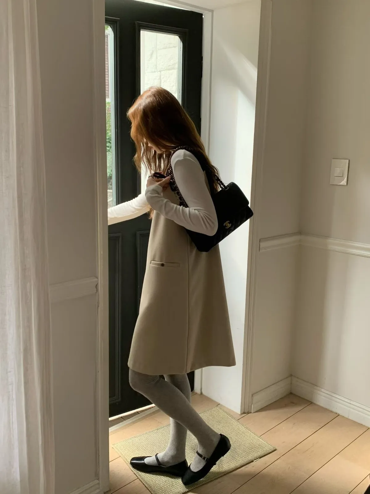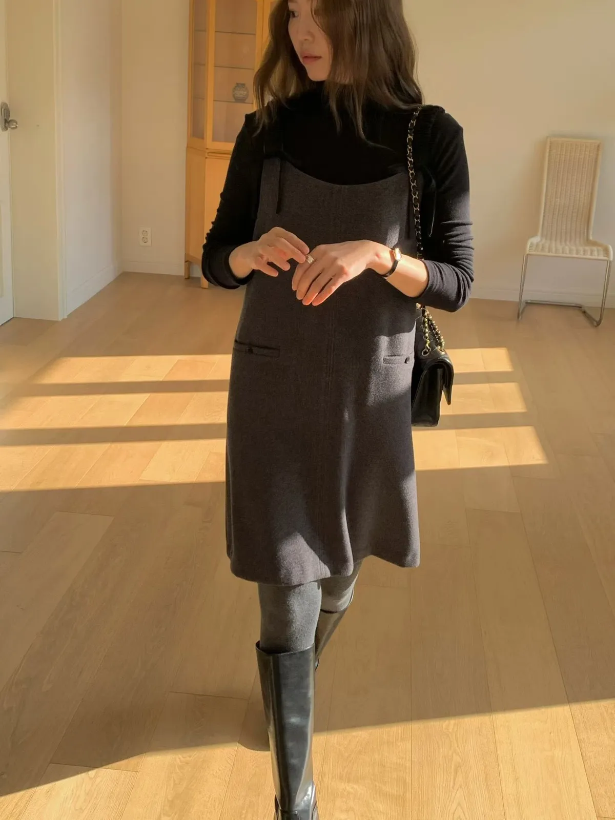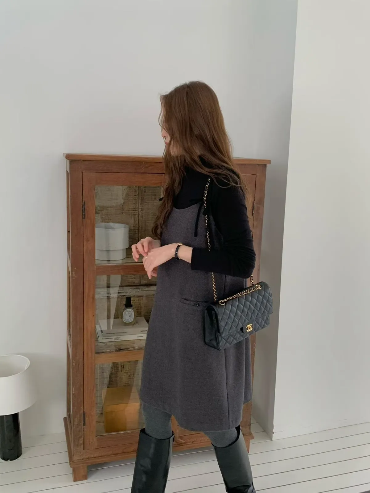 胸49 腰52 臀55 長89 cm (羊毛18%)