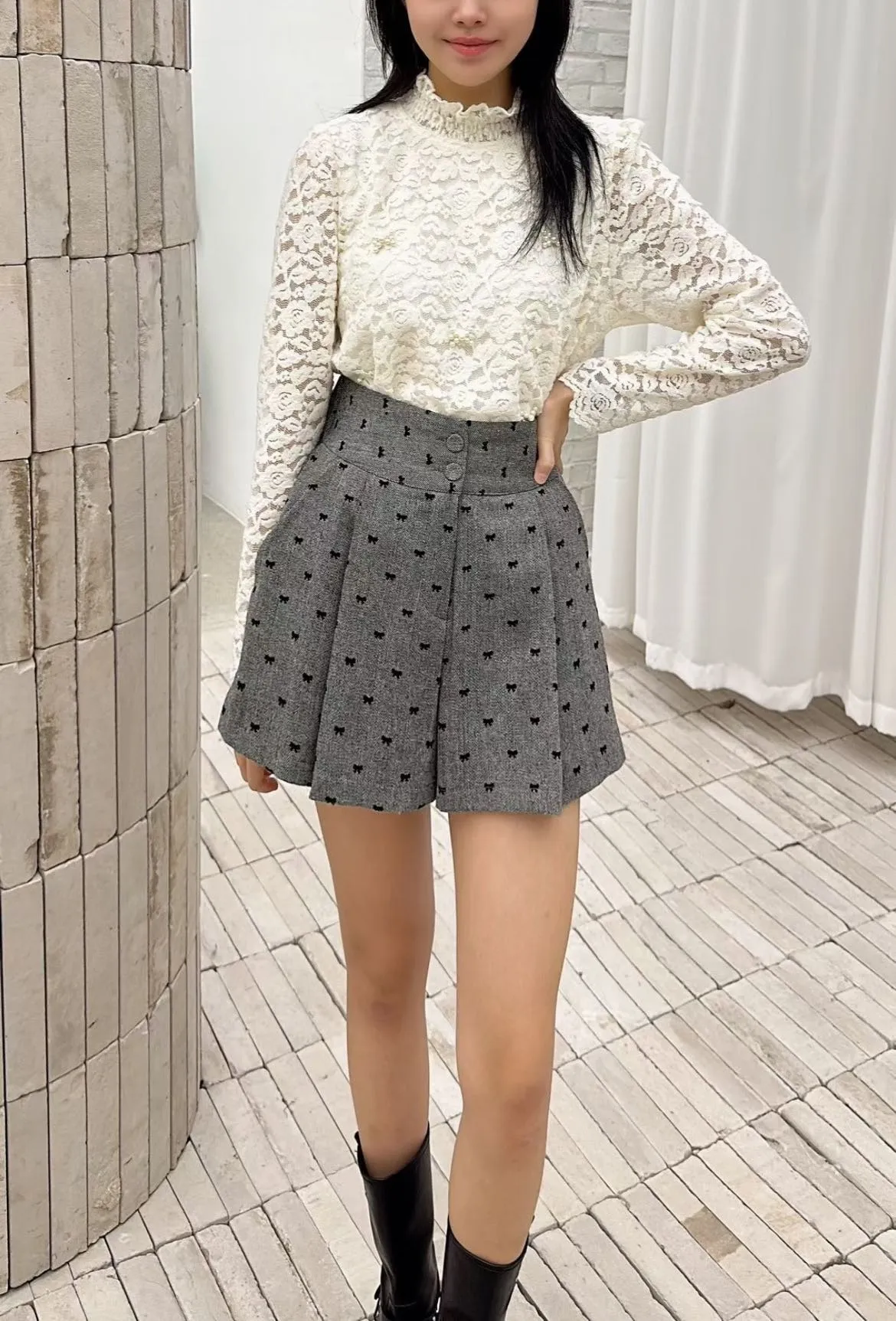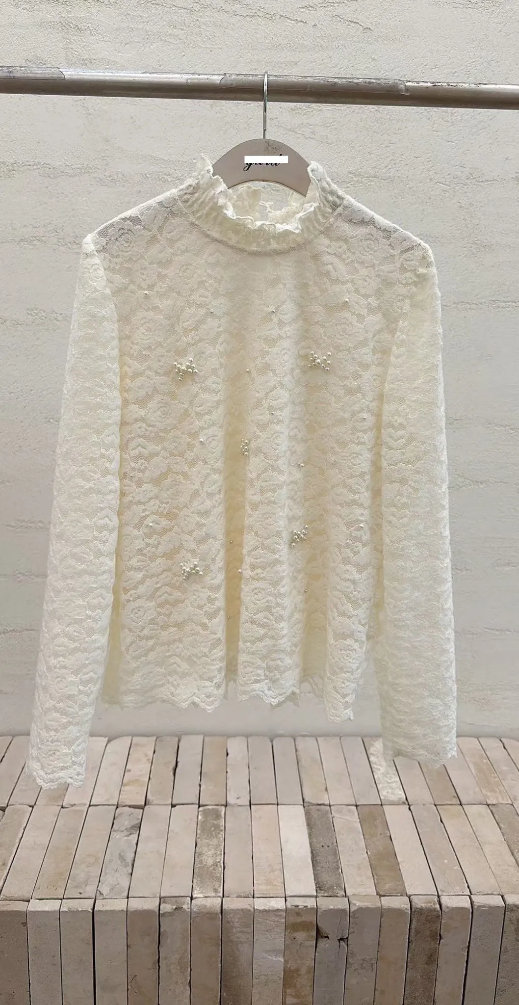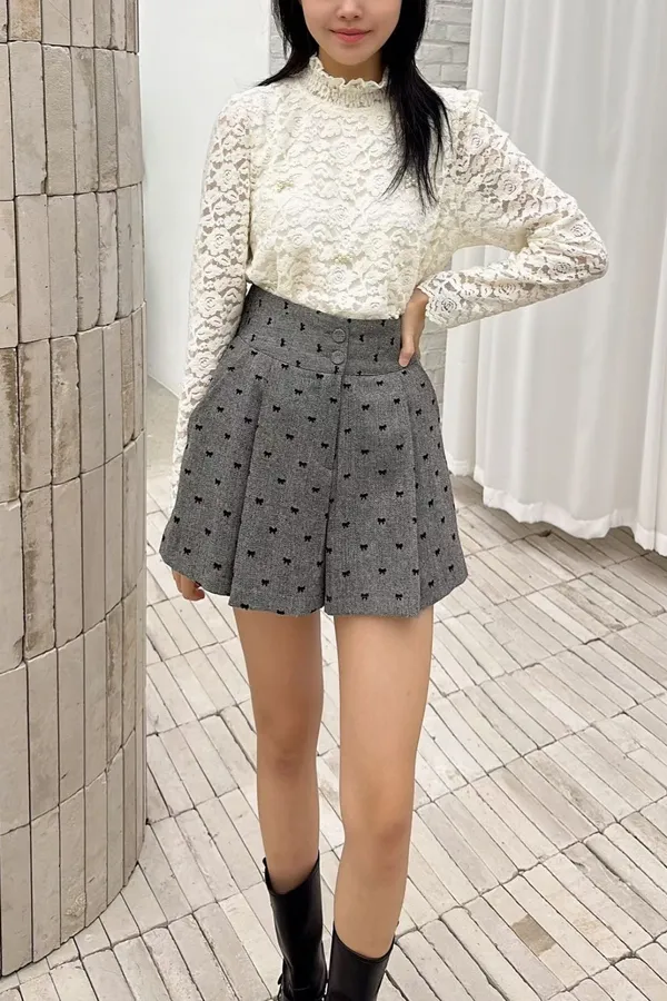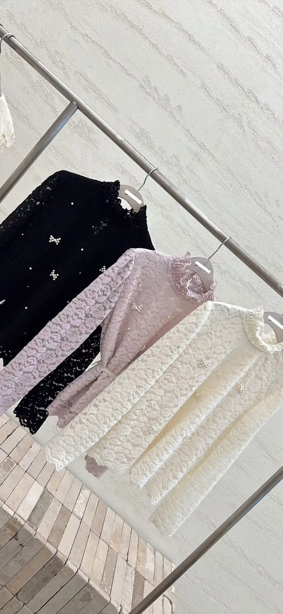 E308高檔甜美蕾絲珍珠蝴蝶結上衣