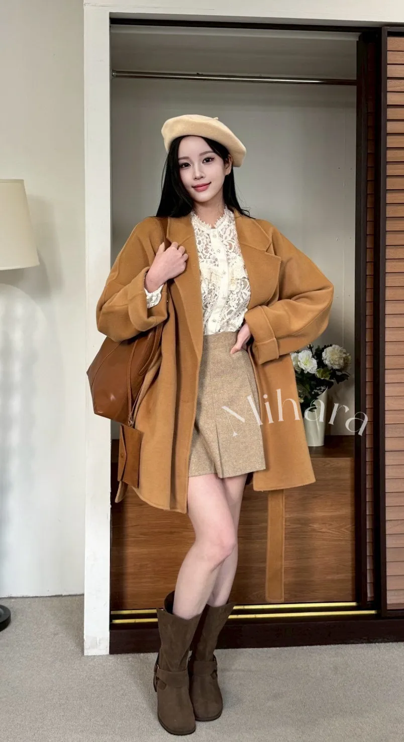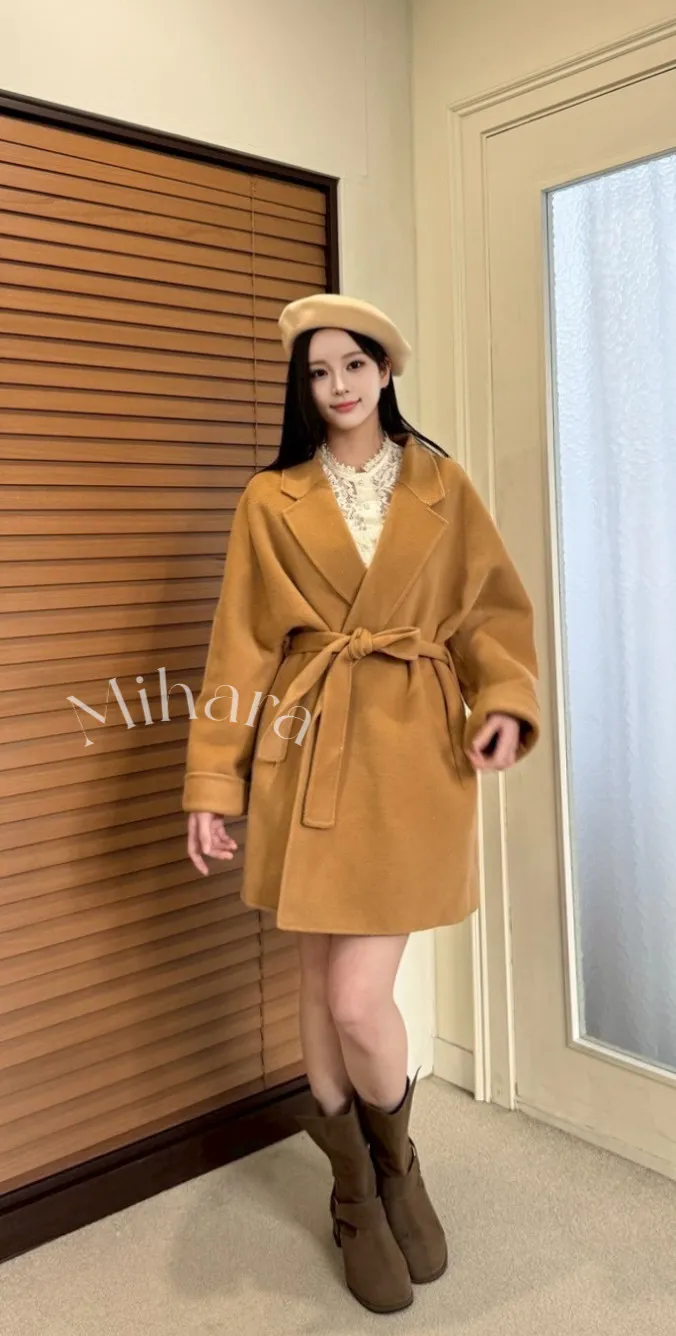 A11 1123翻領質感100%羊毛綁帶大衣外套2色