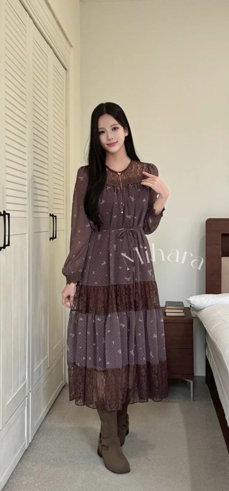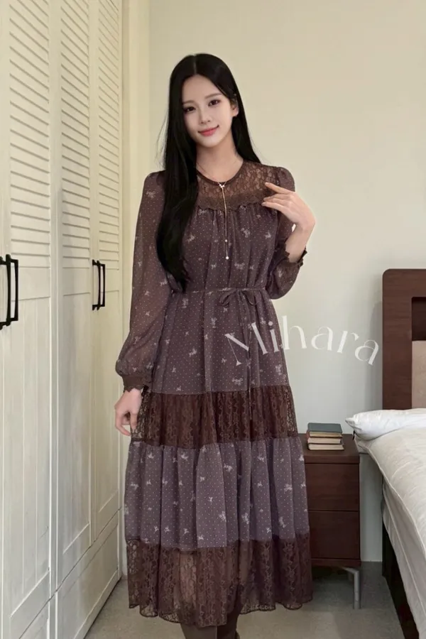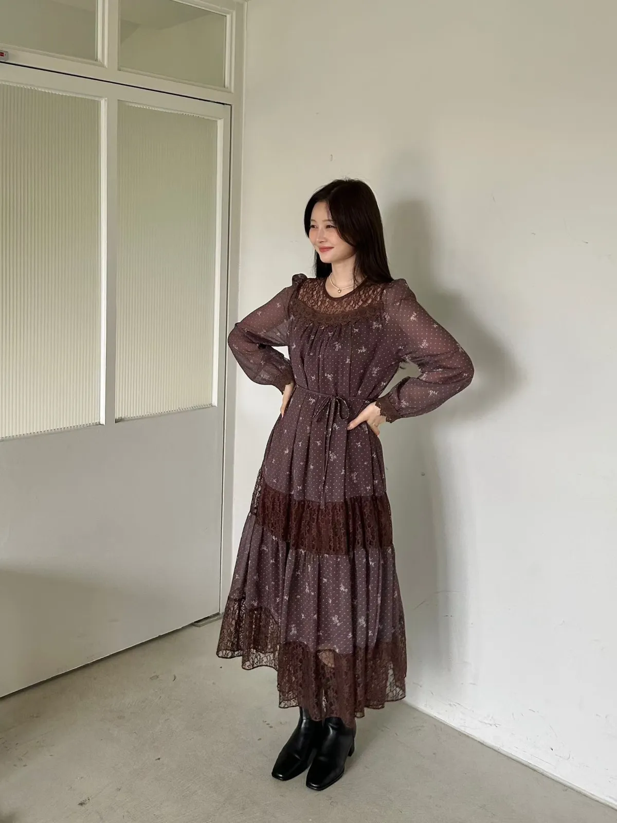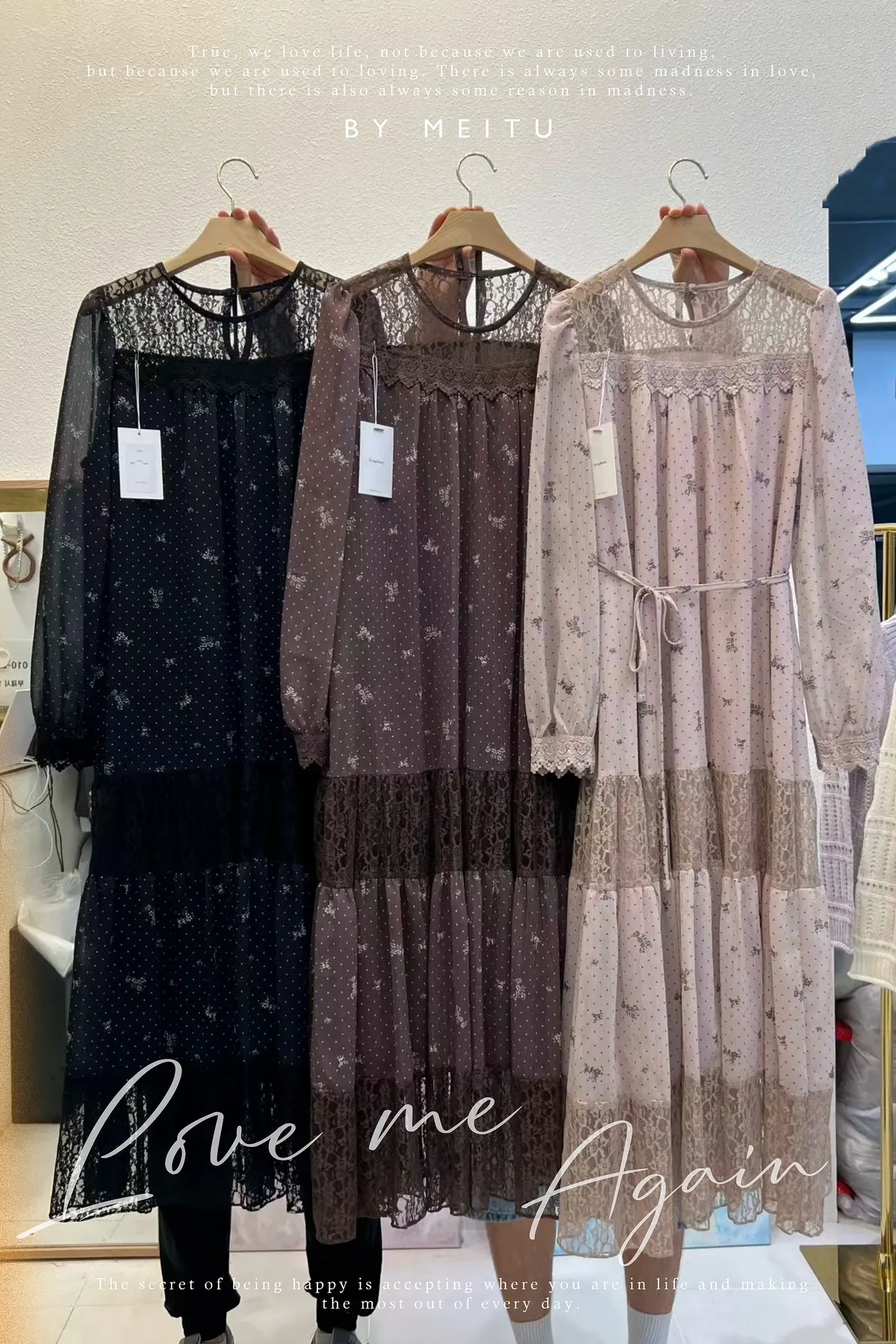 A13 1123典雅蕾絲碎花綁帶洋裝3色