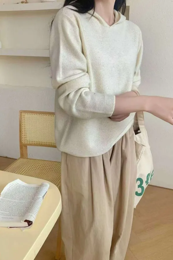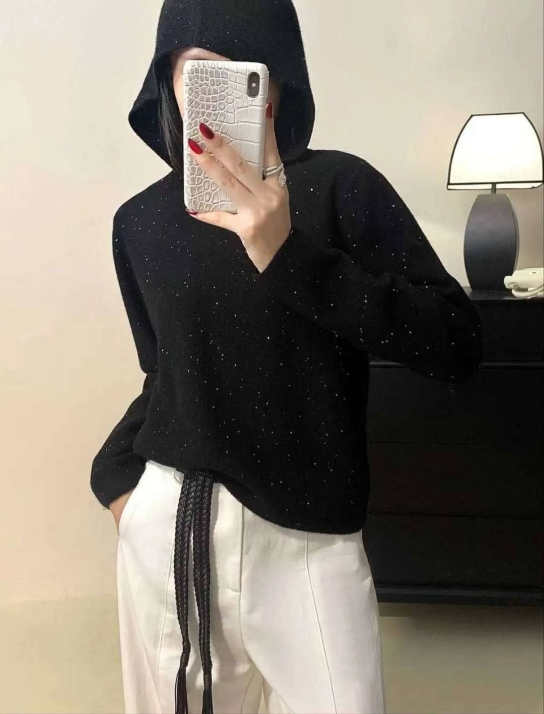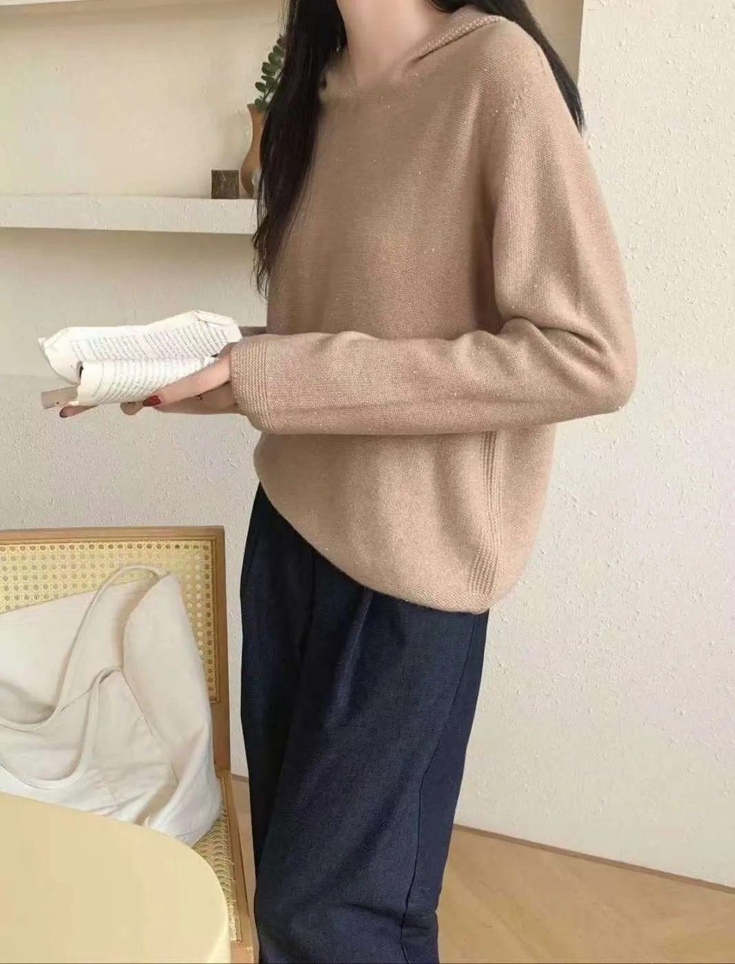E66Love針織家連帽亮片羊毛混紡針織側邊直紋設計上衣4色