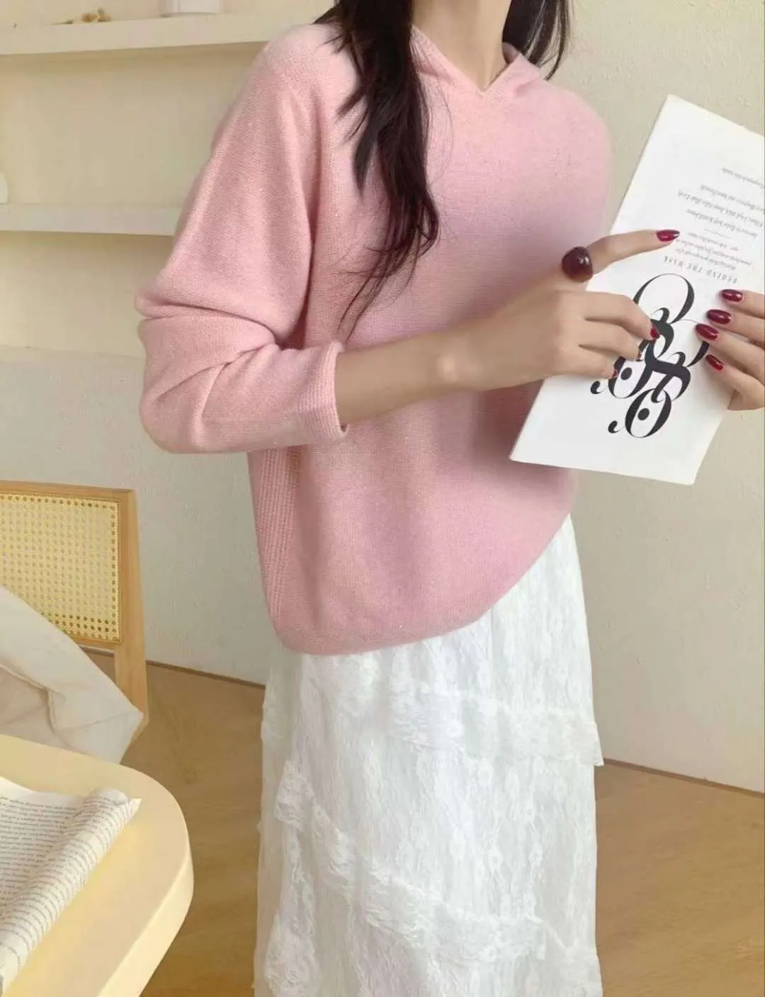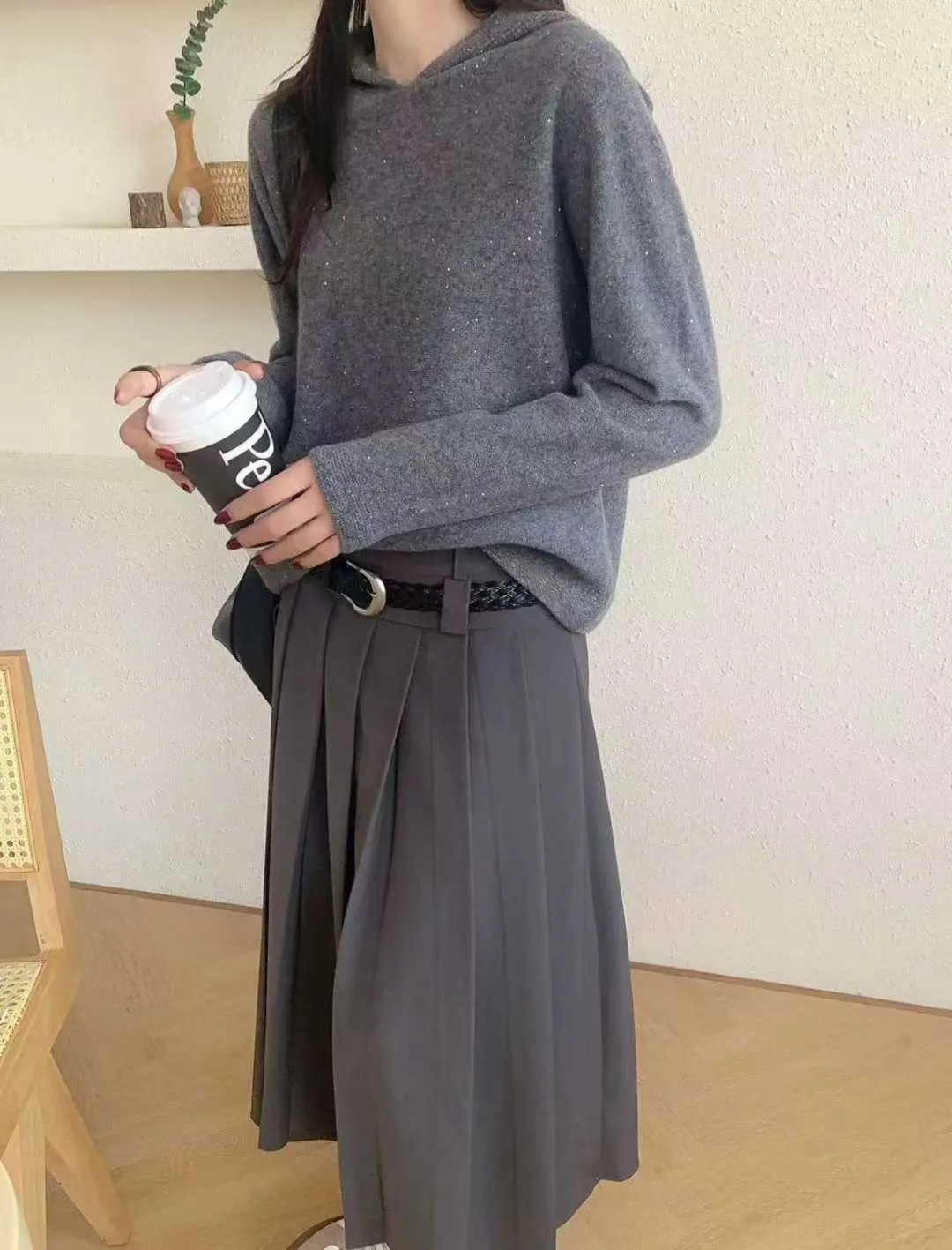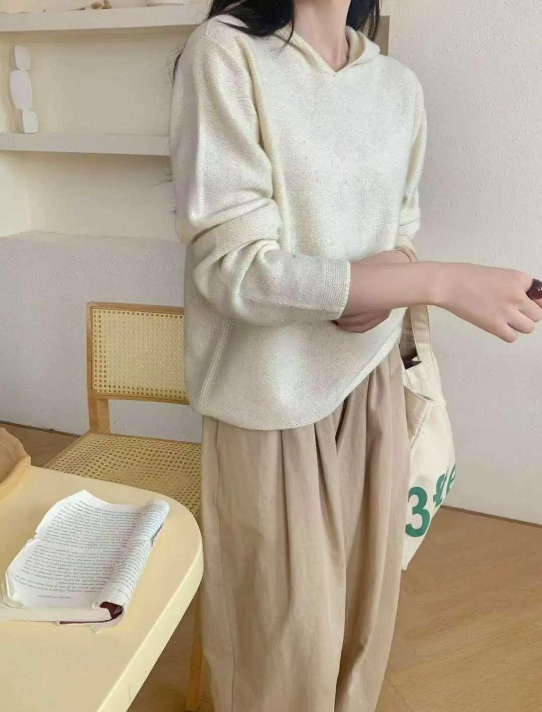 E66Love針織家連帽亮片羊毛混紡針織側邊直紋設計上衣4色