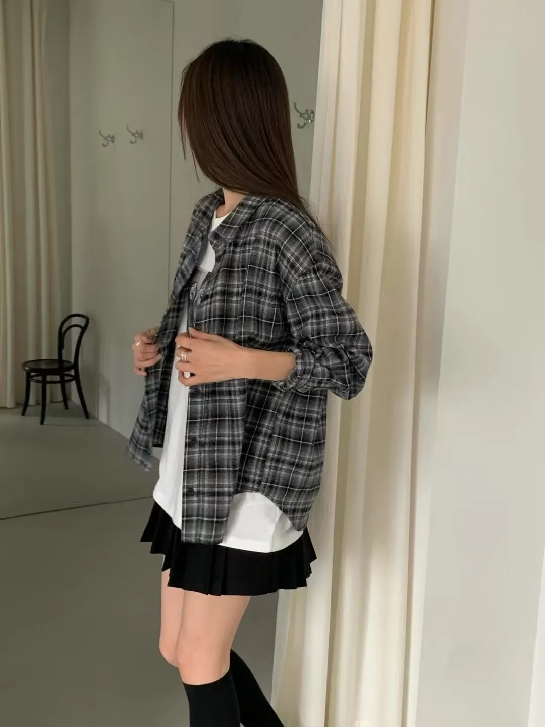 A41 1124高檔AN家柔軟不易皺棉質格紋襯衫2色
