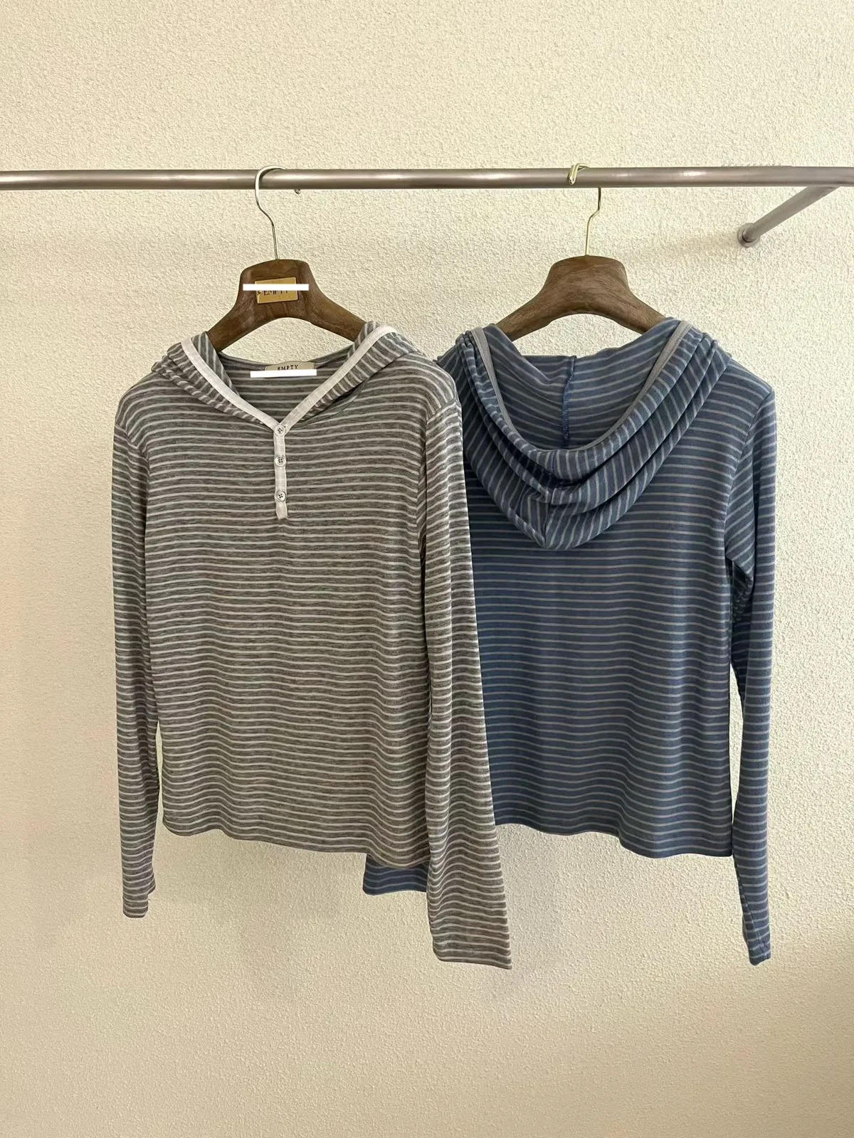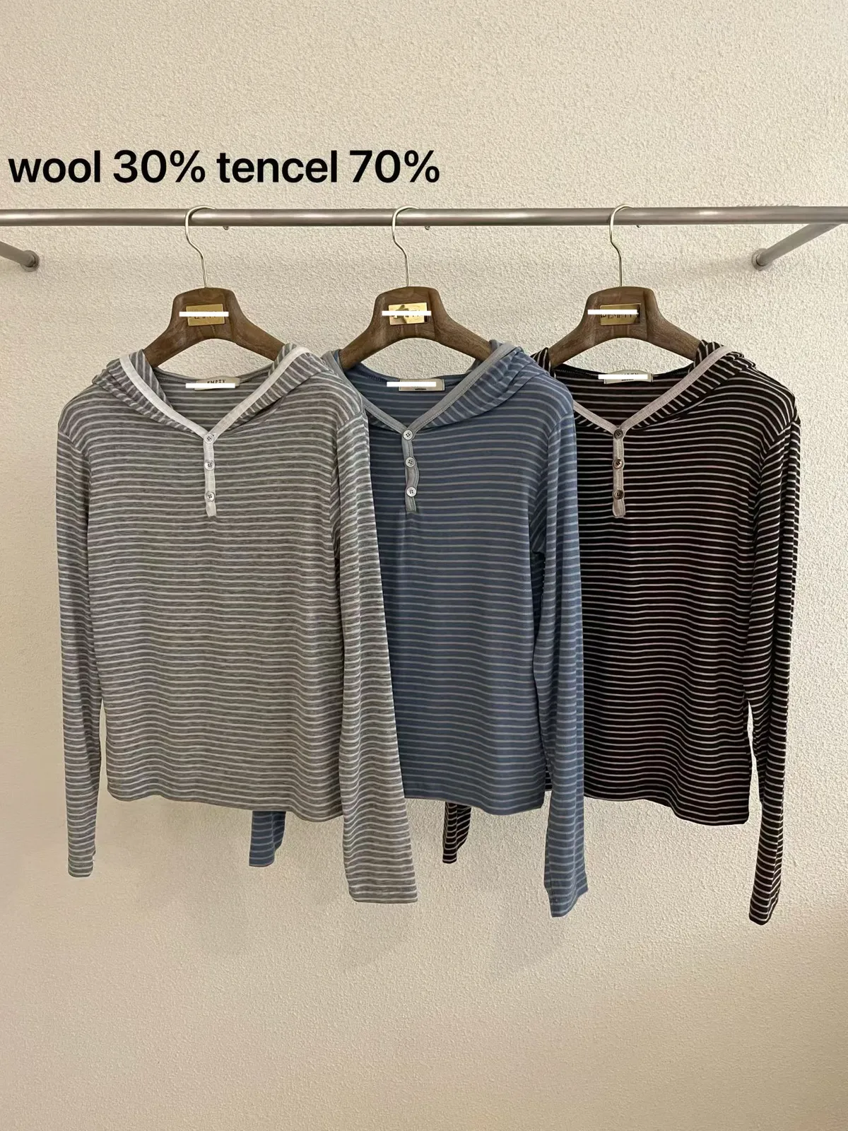 A50 1124高檔可愛家天絲混羊毛細橫條排釦連帽上衣