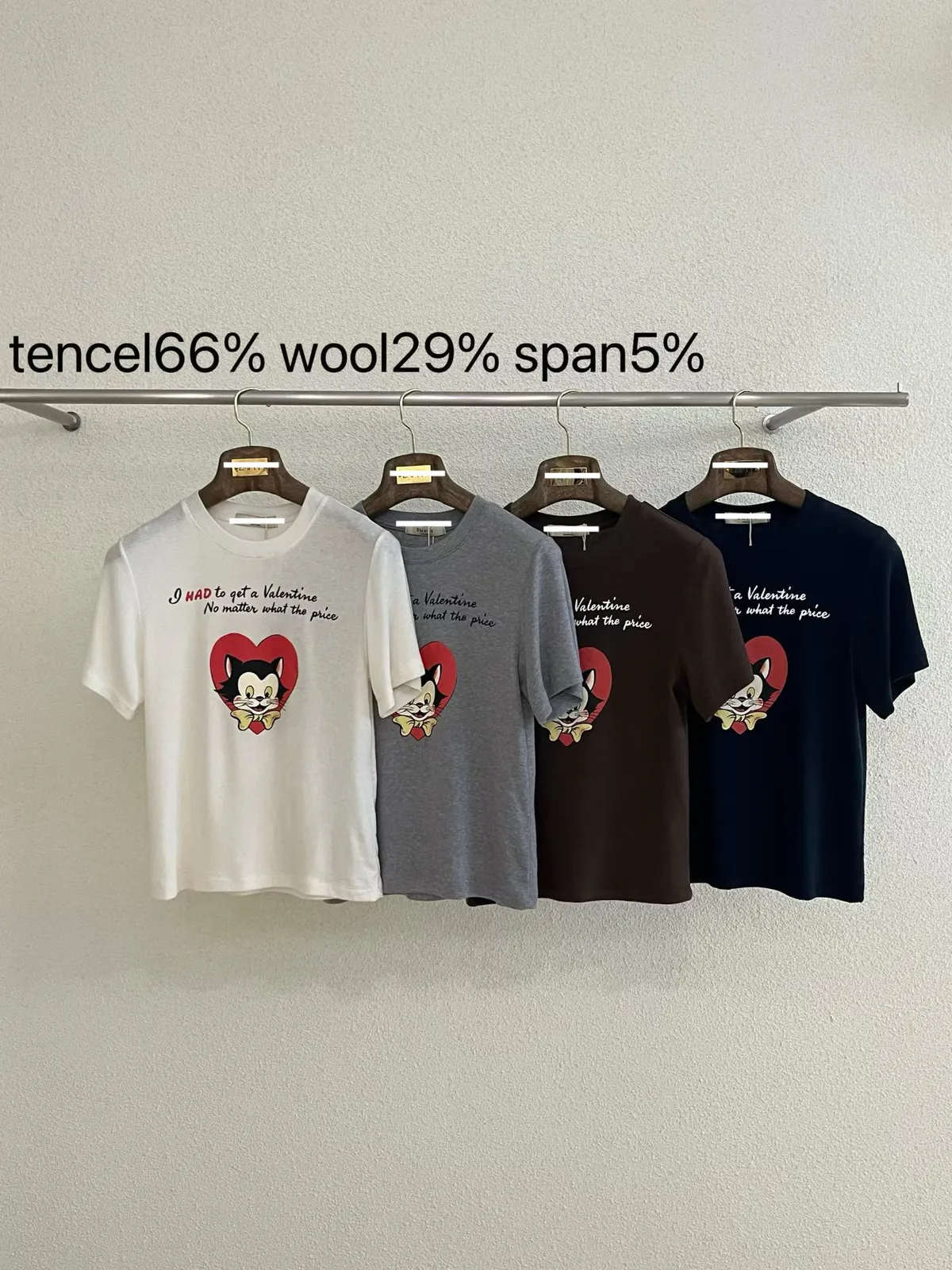 A51 1124高檔可愛家天絲羊毛混紡卡通圓領磨毛上衣